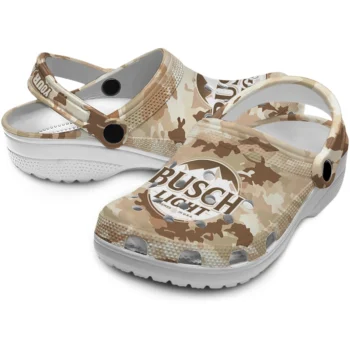 Personalized Busch Light Beige Camouflage Beige Brown Clogs $49.95
