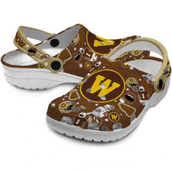Each pair of Western Michigan Broncos Crocs proudly showcases the team’s primary colors—deep brown and vibrant gold—reflecting the fearless energy and resilience of the Broncos spirit. The fan-themed patterns evoke dynamic elements of the Broncos’ identity, from the bold “WMU” motifs to subtle nods to the iconic bronco horse symbol, encapsulating the strength and determination synonymous with the team. Perfectly paired with casual game-day apparel, these clogs complement everything from classic denim jeans to khaki shorts, making them a versatile addition to any adult fan’s wardrobe. Men might style these with Broncos caps and sporty polos for a cohesive look, while women can pair the clogs with Broncos tees or lightweight jackets for spirited streetwear.