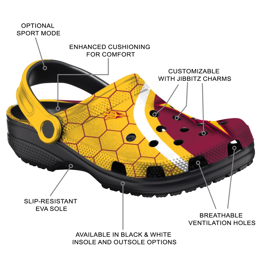 Show your spirit with the ultimate comfort clog! The All-Star Spirit Comfort Clogs – Arizona State Sun Devils Hexagon Grid Clogs are designed to keep pace with your active life while showcasing your love for the game. We’ve combined featherlight EVA material with bold, team-inspired color patterns! These clogs are a home run for versatility, offering slip-on ease, breezy comfort, and a vibrant look that travels effortlessly from the stadium parking lot to your sofa. What an easy way to cheer on your team!