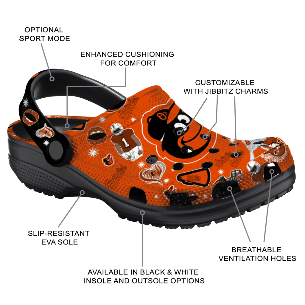 Comfort that Wins the Day! Can footwear truly be this comfortable and cool? Yes, they can! The All-Star Spirit Comfort Clogs – Baltimore Orioles Football Icons Clogs deliver the cushiony feel your feet crave. Crafted from premium, durable EVA, they offer excellent support and shock absorption – perfect for those long days on your feet.