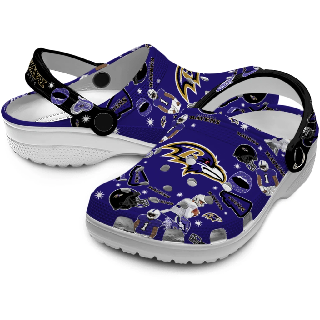 Comfort that Wins the Day! Can footwear truly be this comfortable and cool? Yes, they can! The All-Star Spirit Comfort Clogs – Baltimore Ravens Football Icons Clogs deliver the cushiony feel your feet crave. Crafted from premium, durable EVA, they offer excellent support and shock absorption – perfect for those long days on your feet.
