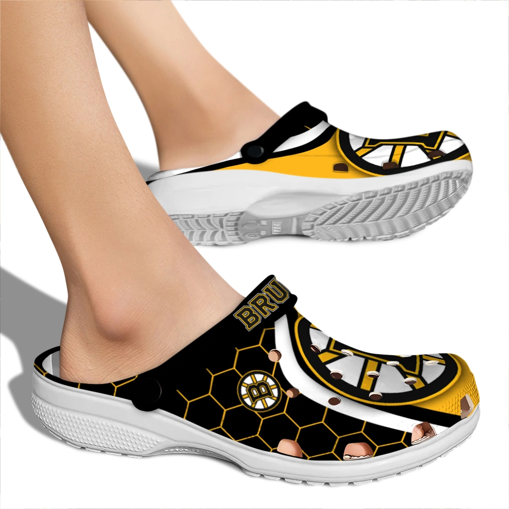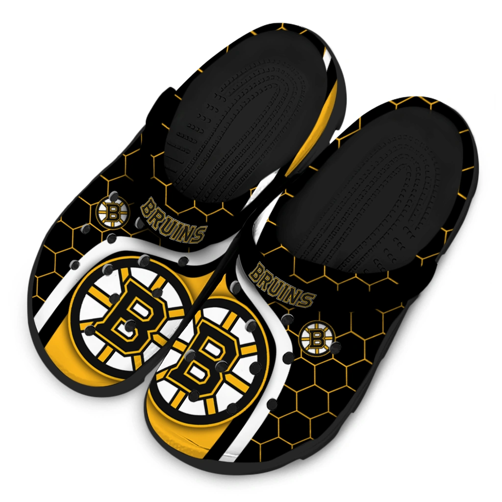 Boston Bruins Hexagon Grid Clogs