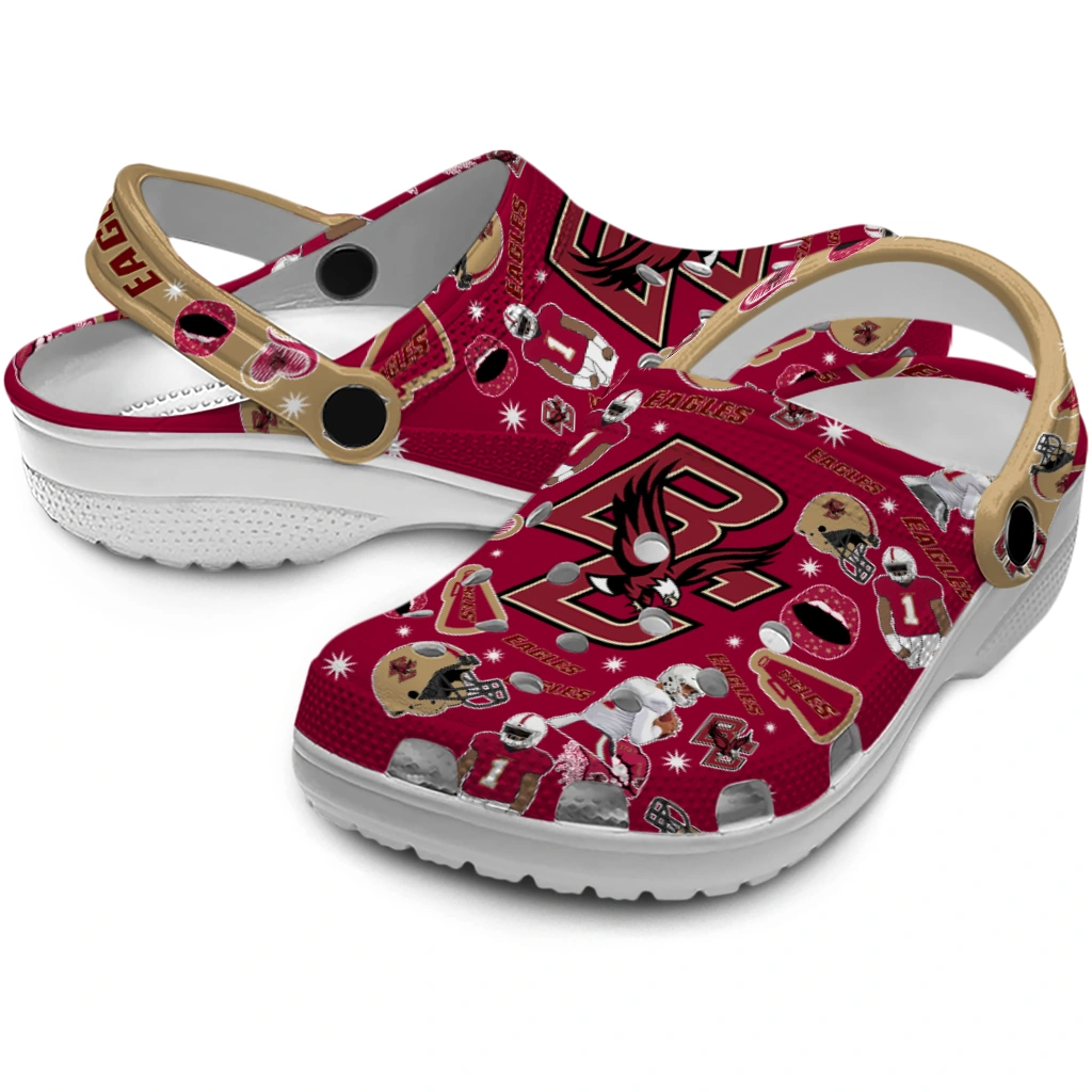 Comfort that Wins the Day! Can footwear truly be this comfortable and cool? Yes, they can! The All-Star Spirit Comfort Clogs – Boston College Eagles Football Icons Clogs deliver the cushiony feel your feet crave. Crafted from premium, durable EVA, they offer excellent support and shock absorption – perfect for those long days on your feet.