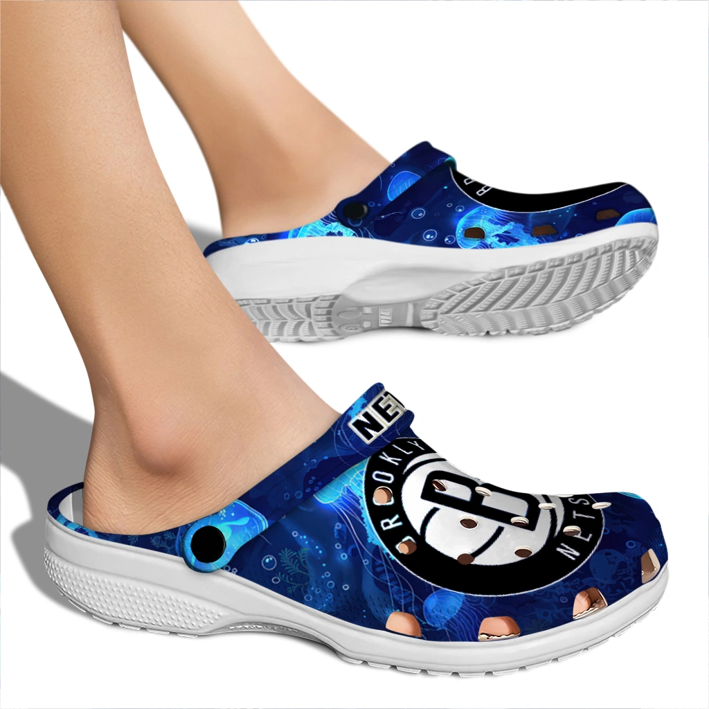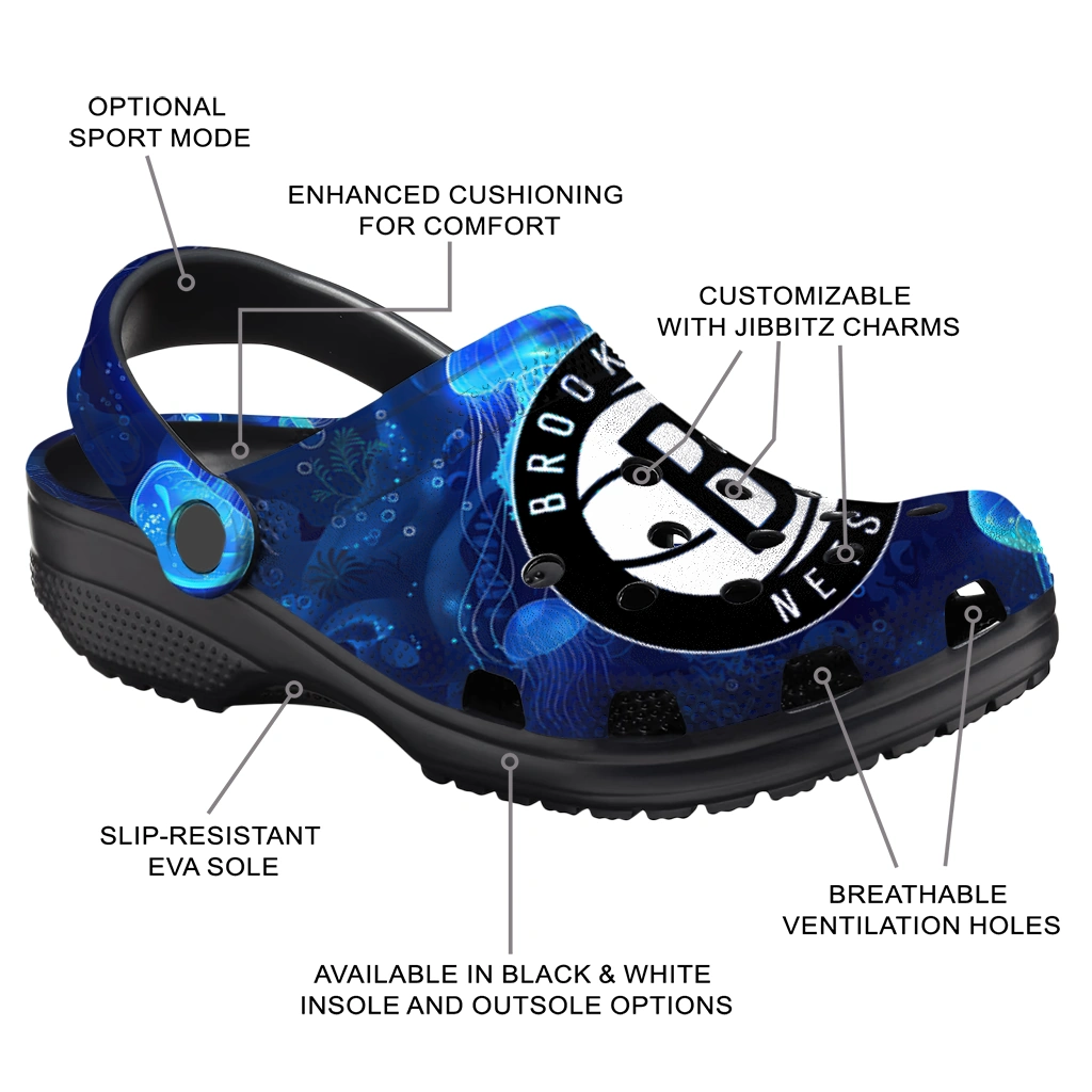 Show your spirit with the ultimate comfort clog! The All-Star Spirit Comfort Clogs – Brooklyn Nets Jellyfish Ocean Clogs are designed to keep pace with your active life while showcasing your love for the game. We've combined featherlight EVA material with bold, team-inspired color patterns! These clogs are a home run for versatility, offering slip-on ease, breezy comfort, and a vibrant look that travels effortlessly from the stadium parking lot to your sofa. What an easy way to cheer on your team!