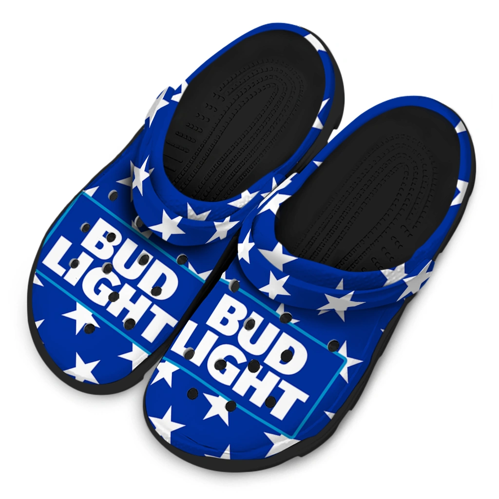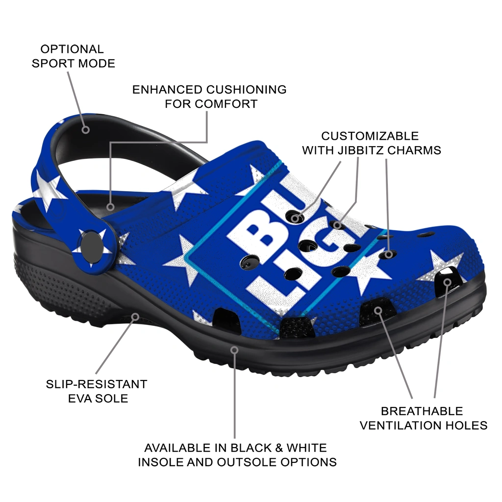 The Personalized Bud light Flash Burst Blue White Clogs from Hey Clogs slips on in seconds and keeps pace with your day – from slow mornings at home to city strolls and weekend getaways. Thoughtful design meets playful style with cheerful colors and prints that pop, adding personality to every step while delivering easy, breezy comfort and lightweight support wherever you wander. Want a signature touch? Customize yours with a name or initials for a one-of-one pair.
