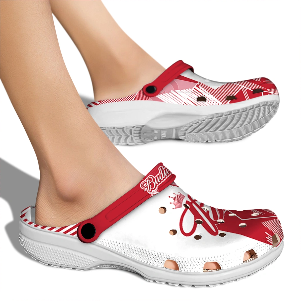 Budweiser Overlay Monogram Red White Clogs