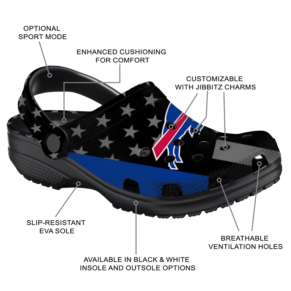 Show your spirit with the ultimate comfort clog! The All-Star Spirit Comfort Clogs – Buffalo Bills Stellar Stripes Theme Clogs are designed to keep pace with your active life while showcasing your love for the game. We’ve combined featherlight EVA material with bold, team-inspired color patterns! These clogs are a home run for versatility, offering slip-on ease, breezy comfort, and a vibrant look that travels effortlessly from the stadium parking lot to your sofa. What an easy way to cheer on your team!