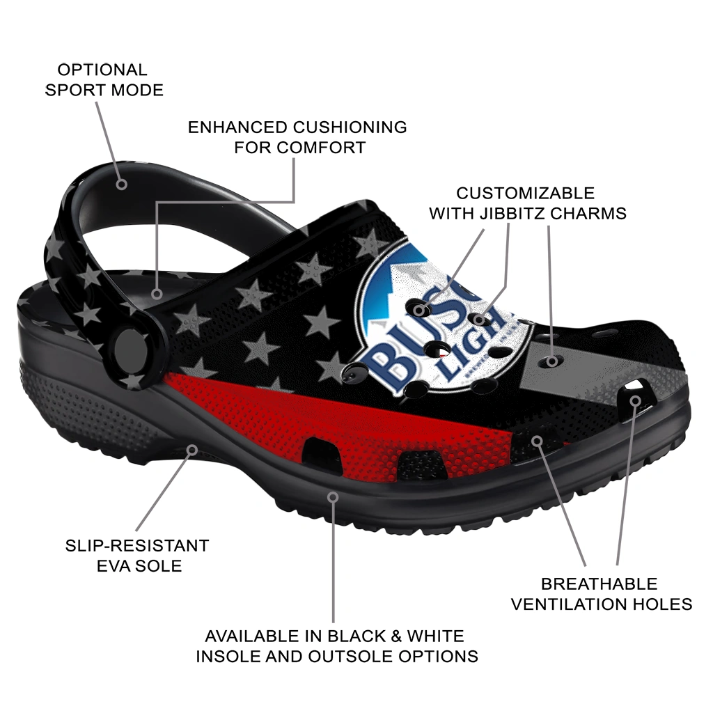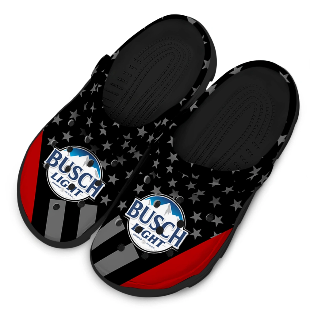 The Busch Light Crest Center Black Red Clogs from Hey Clogs slips on in seconds and keeps pace with your day, from slow mornings at home to city strolls and weekend getaways. Thoughtful design meets playful style with cheerful colors and prints that pop, adding personality to every step while delivering easy, breezy comfort and lightweight support wherever you wander.