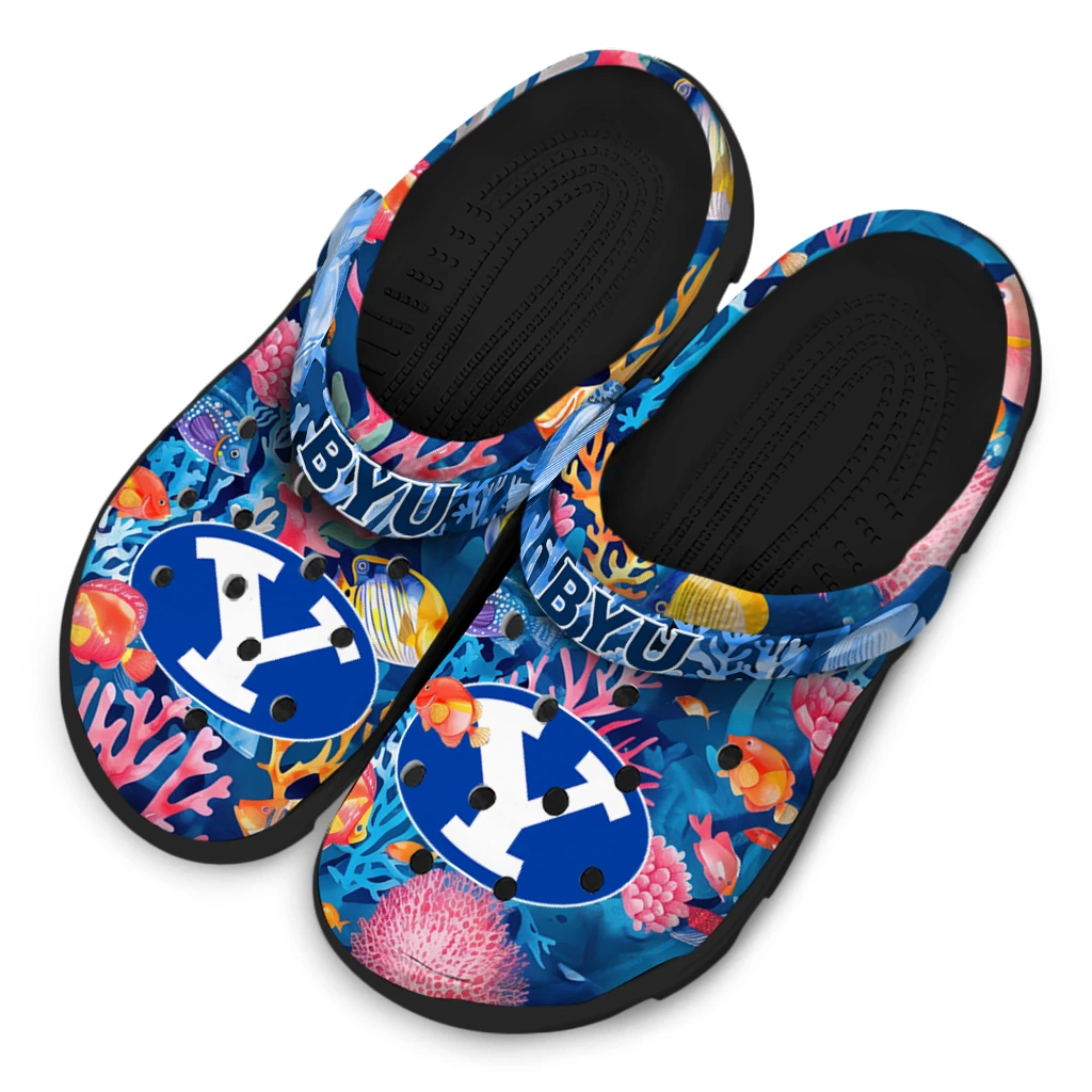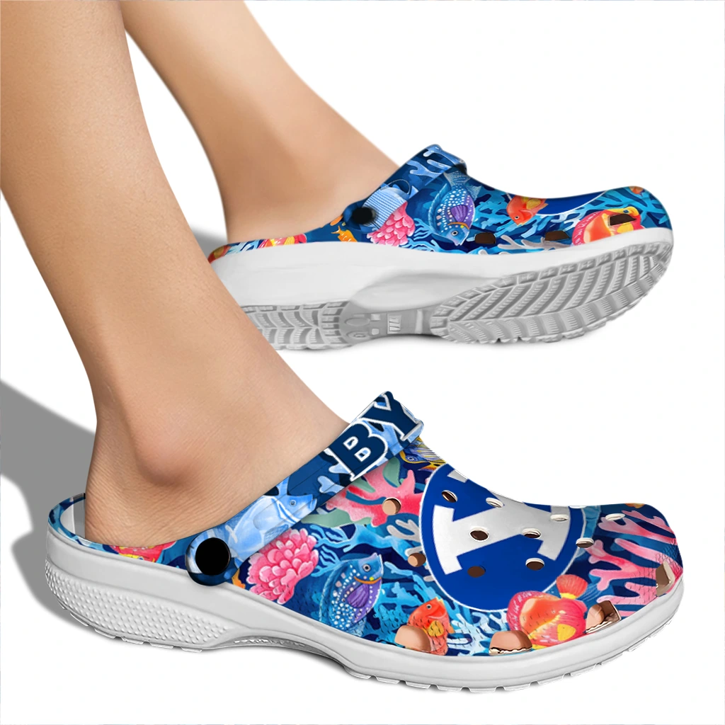 Show your spirit with the ultimate comfort clog! The All-Star Spirit Comfort Clogs – BYU Cougars Ocean Wonders Clogs are designed to keep pace with your active life while showcasing your love for the game. We've combined featherlight EVA material with bold, team-inspired color patterns! These clogs are a home run for versatility, offering slip-on ease, breezy comfort, and a vibrant look that travels effortlessly from the stadium parking lot to your sofa. What an easy way to cheer on your team!