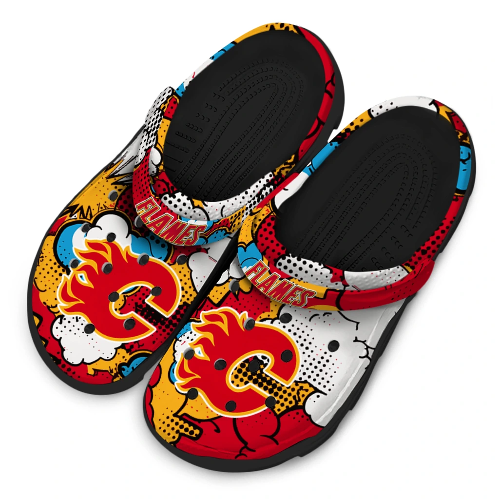 Comfort that Wins the Day! Can footwear truly be this comfortable and cool? Yes, they can! The All-Star Spirit Comfort Clogs – Calgary Flames Cloud Splash Clogs deliver the cushiony feel your feet crave. Crafted from premium, durable EVA, they offer excellent support and shock absorption – perfect for those long days on your feet.