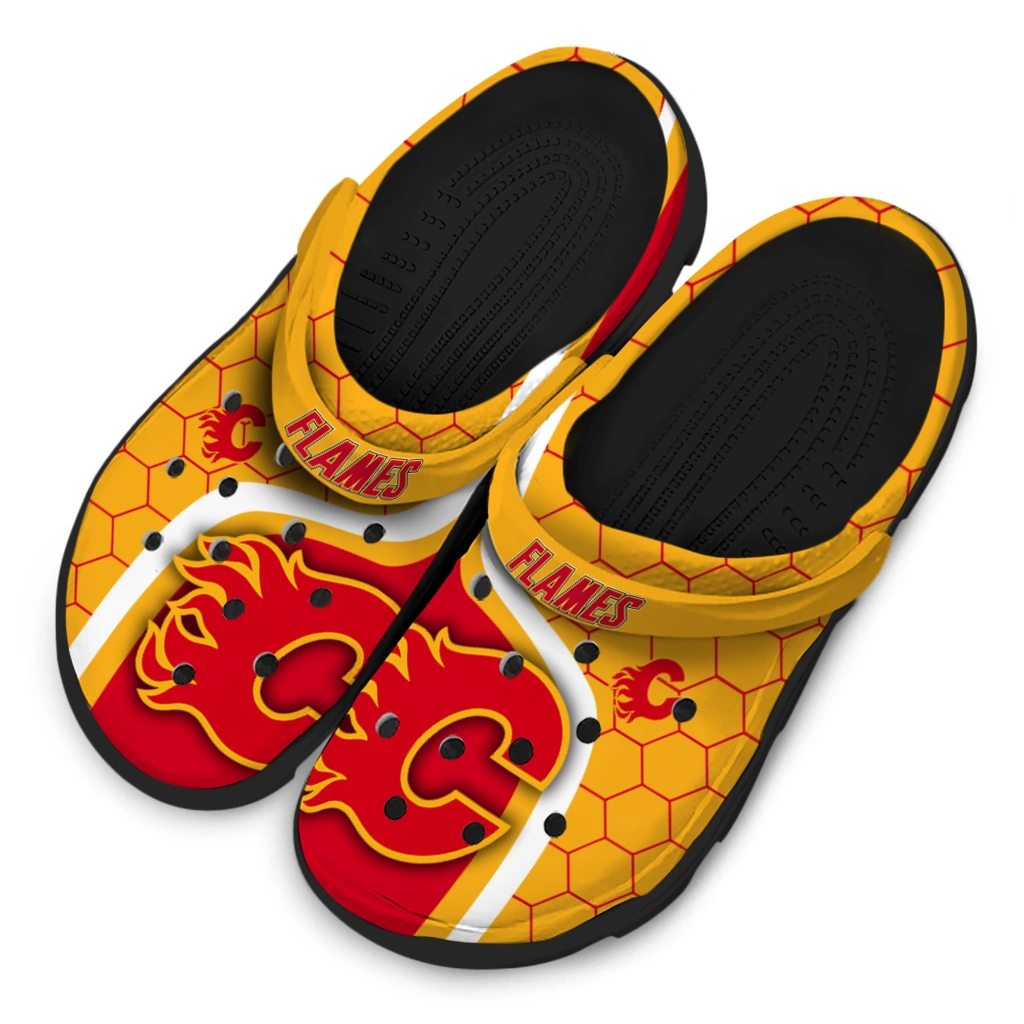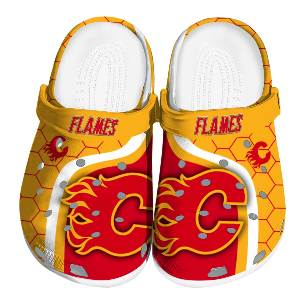 Calgary Flames Hexagon Grid Clogs