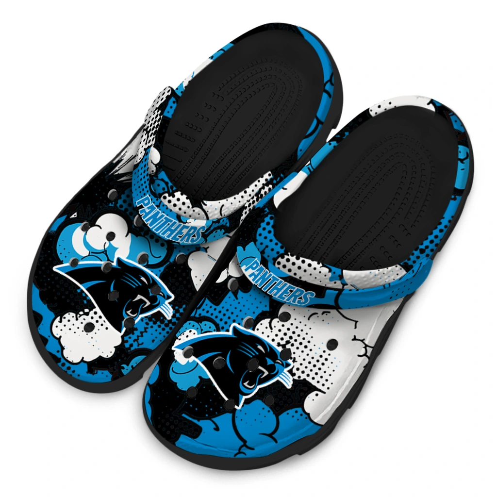 Show your spirit with the ultimate comfort clog! The All-Star Spirit Comfort Clogs – Carolina Panthers Cloud Splash Clogs are designed to keep pace with your active life while showcasing your love for the game. We've combined featherlight EVA material with bold, team-inspired color patterns! These clogs are a home run for versatility, offering slip-on ease, breezy comfort, and a vibrant look that travels effortlessly from the stadium parking lot to your sofa. What an easy way to cheer on your team!
