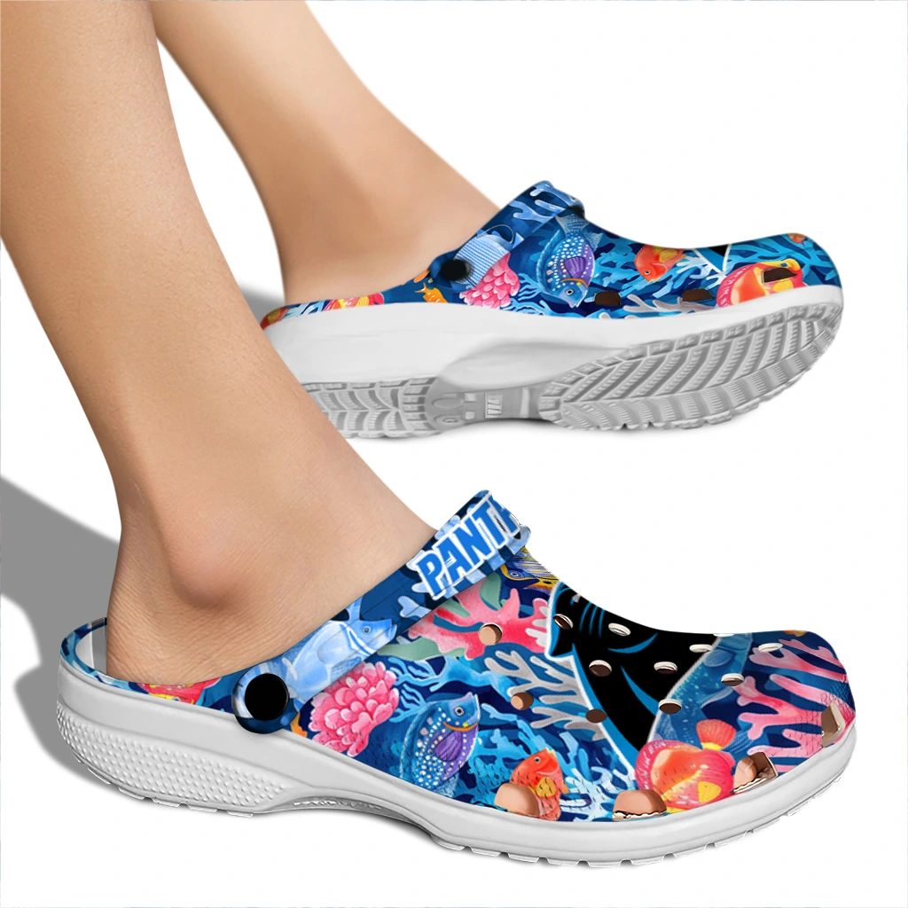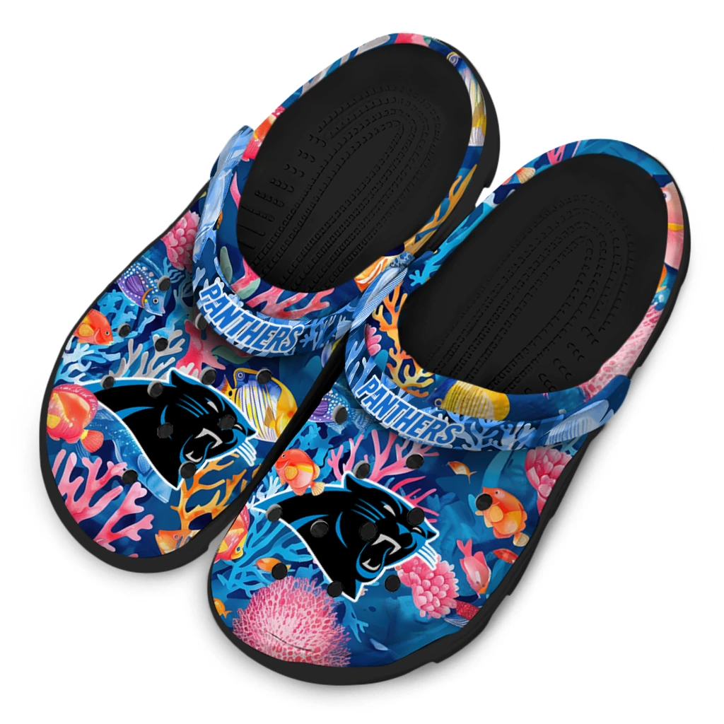 Show your spirit with the ultimate comfort clog! The All-Star Spirit Comfort Clogs – Carolina Panthers Ocean Wonders Clogs are designed to keep pace with your active life while showcasing your love for the game. We've combined featherlight EVA material with bold, team-inspired color patterns! These clogs are a home run for versatility, offering slip-on ease, breezy comfort, and a vibrant look that travels effortlessly from the stadium parking lot to your sofa. What an easy way to cheer on your team!