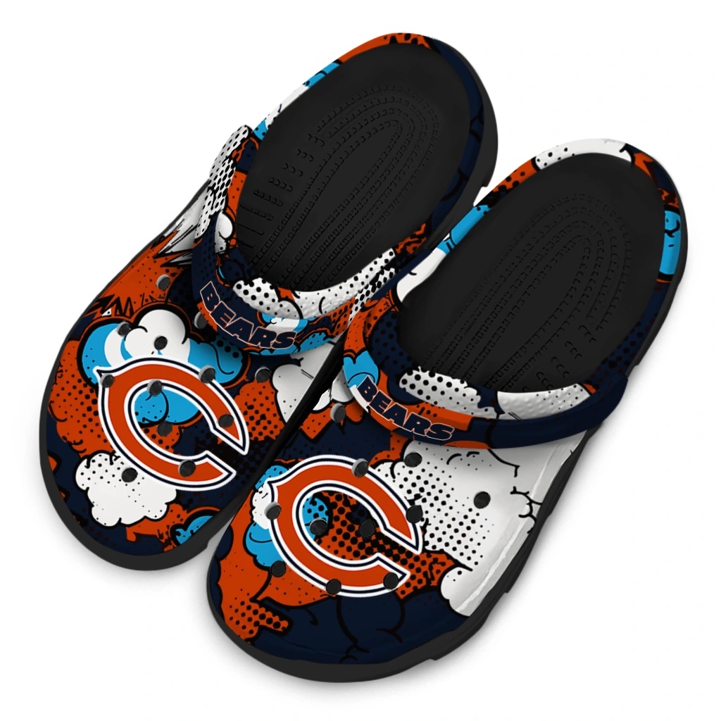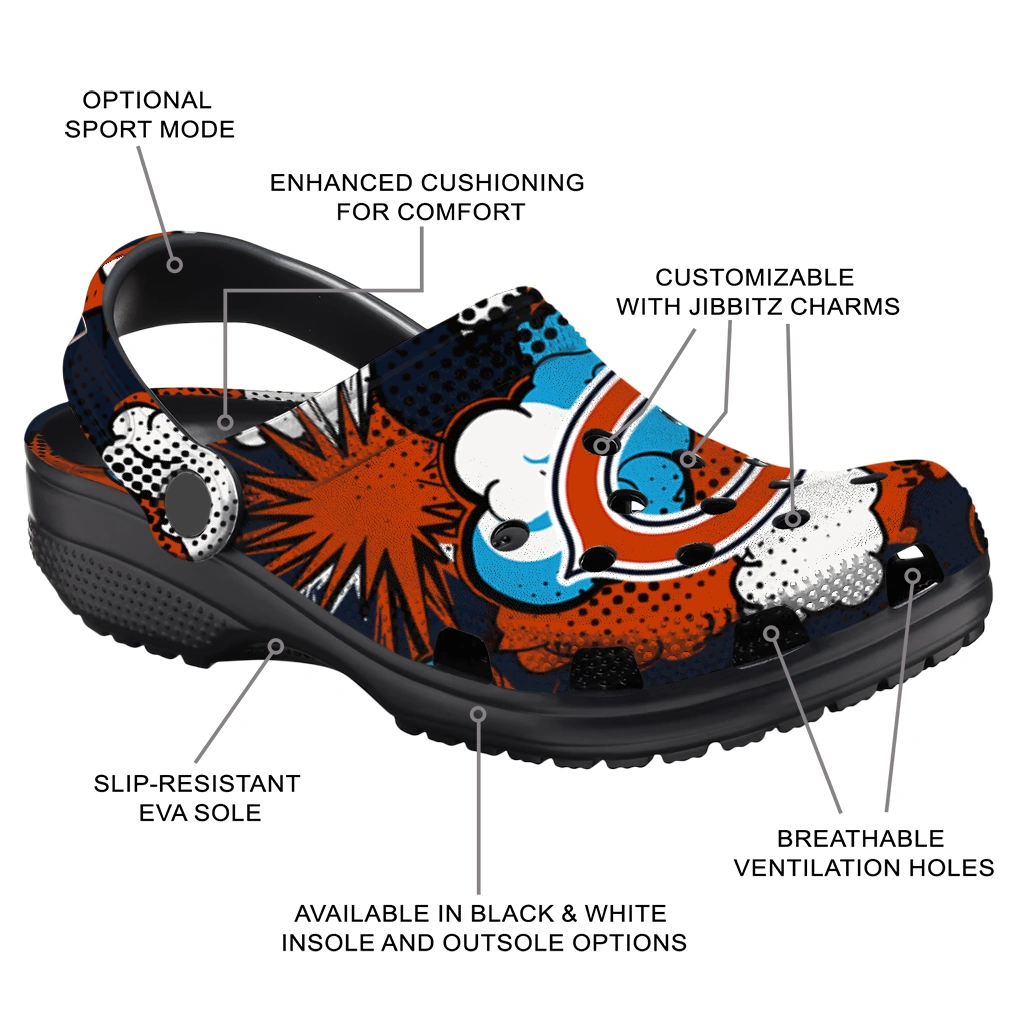 Show your spirit with the ultimate comfort clog! The All-Star Spirit Comfort Clogs – Chicago Bears Cloud Splash Clogs are designed to keep pace with your active life while showcasing your love for the game. We've combined featherlight EVA material with bold, team-inspired color patterns! These clogs are a home run for versatility, offering slip-on ease, breezy comfort, and a vibrant look that travels effortlessly from the stadium parking lot to your sofa. What an easy way to cheer on your team!