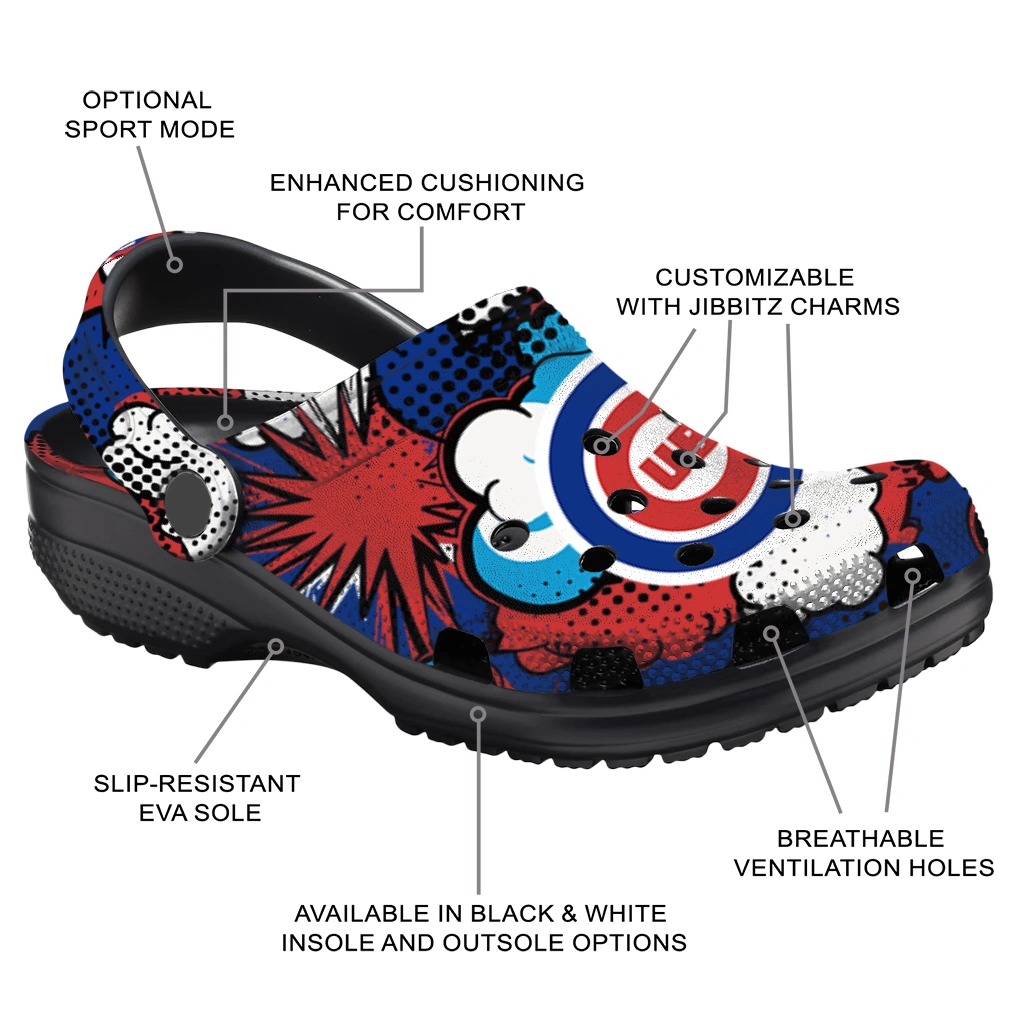 Comfort that Wins the Day! Can footwear truly be this comfortable and cool? Yes, they can! The All-Star Spirit Comfort Clogs – Chicago Cubs Cloud Splash Clogs deliver the cushiony feel your feet crave. Crafted from premium, durable EVA, they offer excellent support and shock absorption – perfect for those long days on your feet.