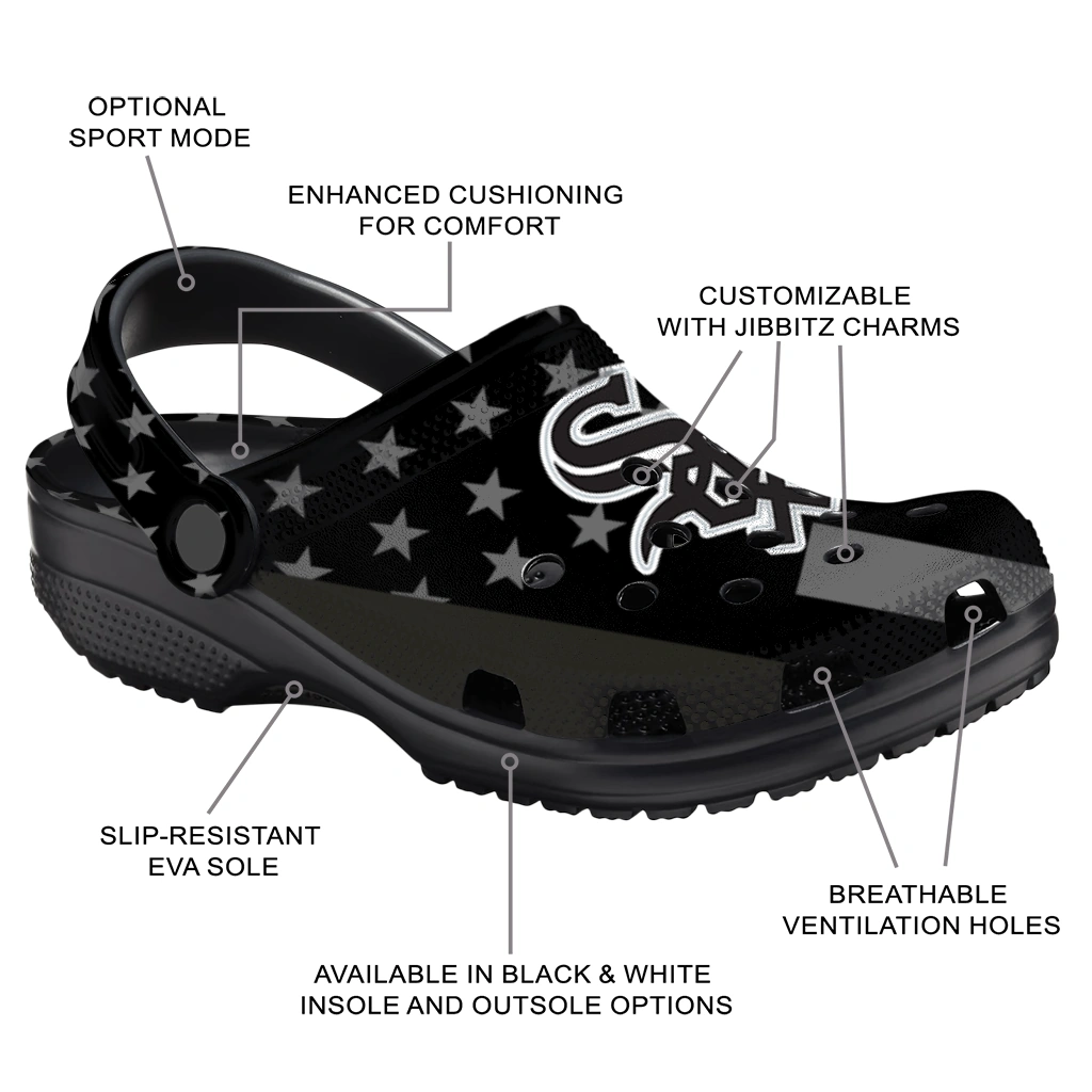 Comfort that Wins the Day! Can footwear truly be this comfortable and cool? Yes, they can! The All-Star Spirit Comfort Clogs – Chicago White Sox Stellar Stripes Theme Clogs deliver the cushiony feel your feet crave. Crafted from premium, durable EVA, they offer excellent support and shock absorption – perfect for those long days on your feet.