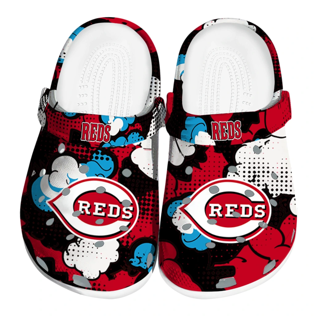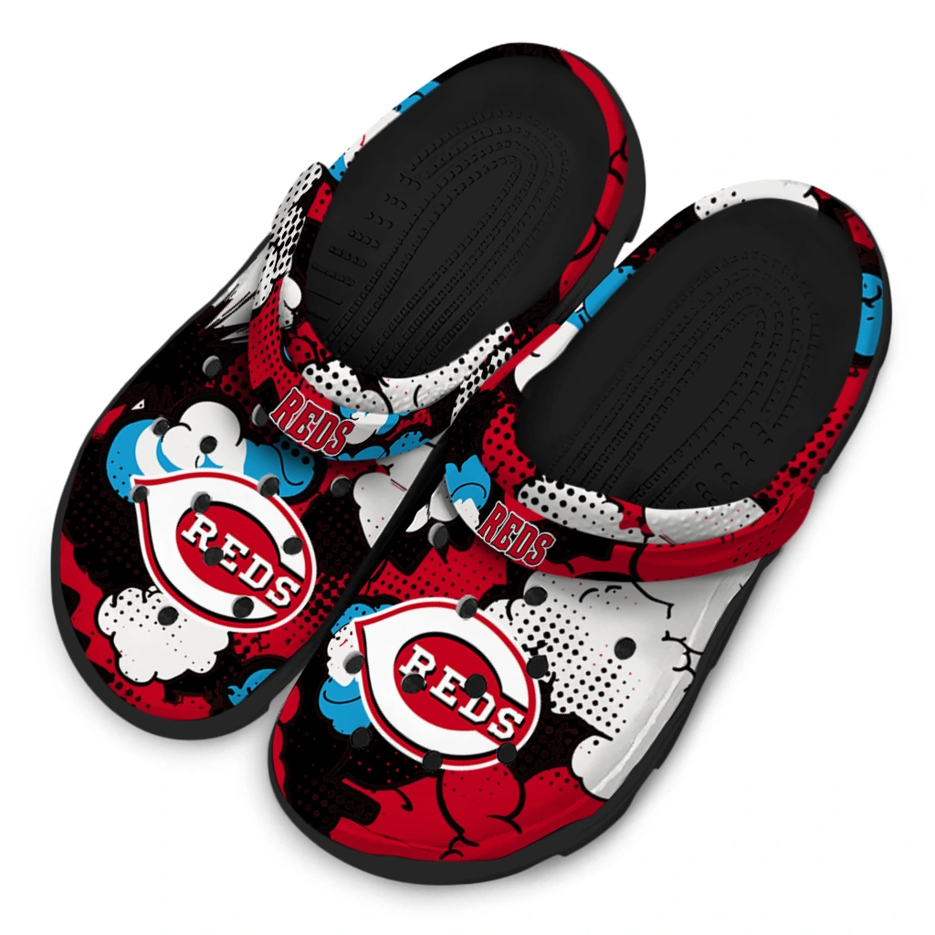 Show your spirit with the ultimate comfort clog! The All-Star Spirit Comfort Clogs – Cincinnati Reds Cloud Splash Clogs are designed to keep pace with your active life while showcasing your love for the game. We've combined featherlight EVA material with bold, team-inspired color patterns! These clogs are a home run for versatility, offering slip-on ease, breezy comfort, and a vibrant look that travels effortlessly from the stadium parking lot to your sofa. What an easy way to cheer on your team!