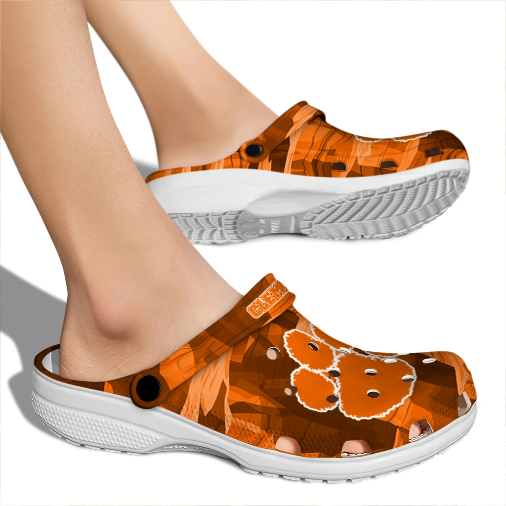 Your Clogs, Your Vibe, Your Name! Custom Clemson Tigers Deer Nightscape Clogs from Hey Clogs lets you take sport team-inspired style to a personal level! Featuring the bold colors you love, these featherlight clogs deliver unbeatable, all-day comfort. What a great way to make them truly yours: add your name to the heel strap! Perfect for gifting or treating yourself, these personalized clogs are a fun, spirited way to step out in comfort.
