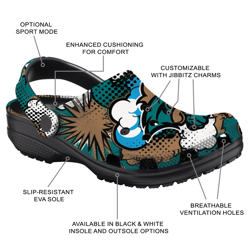 Your Clogs, Your Vibe, Your Name! Personalized Coastal Carolina Chanticleers Snowflake Mosaic Clogs from Hey Clogs lets you take sport team-inspired style to a personal level! Featuring the bold colors you love, these featherlight clogs deliver unbeatable, all-day comfort. What a great way to make them truly yours: add your name to the heel strap! Perfect for gifting or treating yourself, these personalized clogs are a fun, spirited way to step out in comfort.