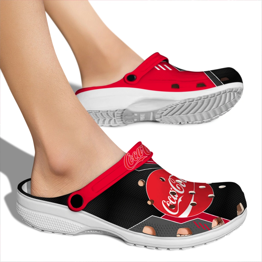 The Coca-Cola Geometric Shapes Red Black Clogs from Hey Clogs slips on in seconds and keeps pace with your day, from slow mornings at home to city strolls and weekend getaways. Thoughtful design meets playful style with cheerful colors and prints that pop, adding personality to every step while delivering easy, breezy comfort and lightweight support wherever you wander.