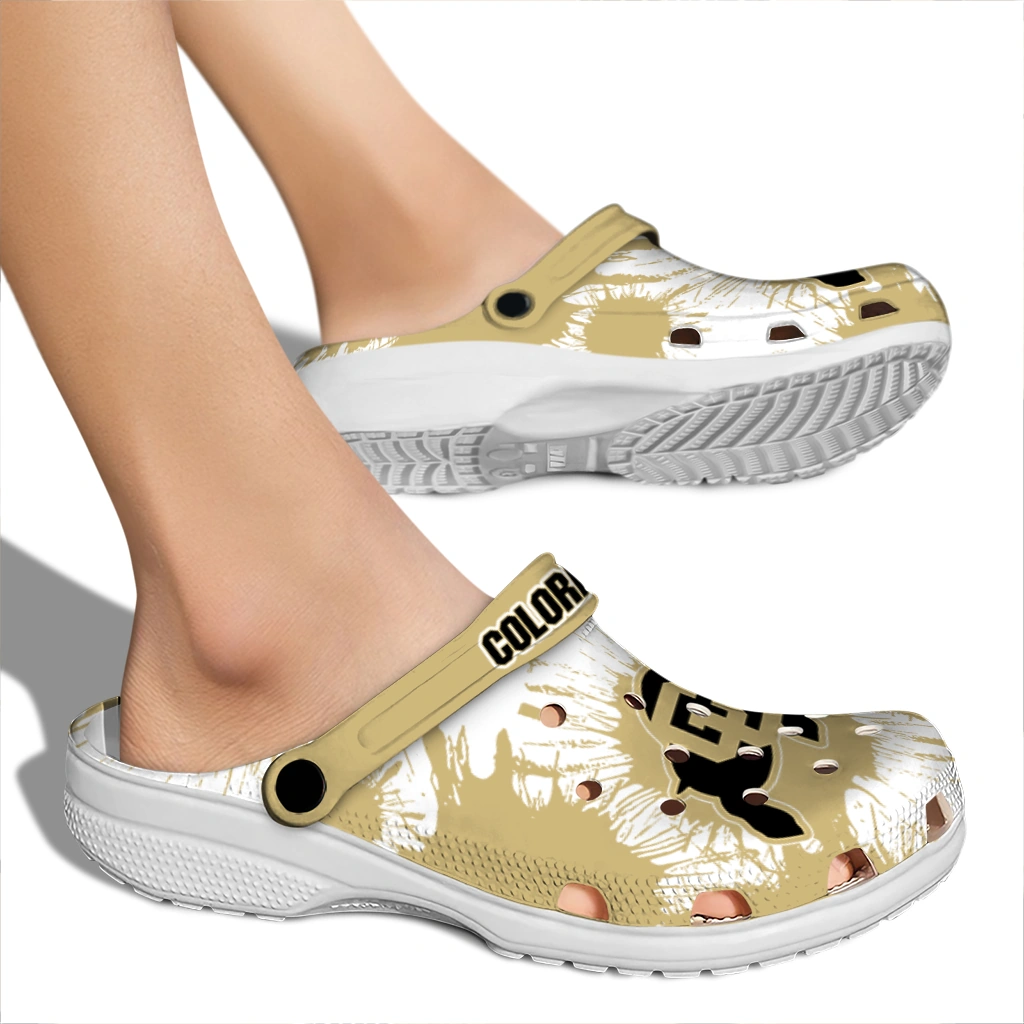 Comfort that Wins the Day! Can footwear truly be this comfortable and cool? Yes, they can! The All-Star Spirit Comfort Clogs – Colorado Buffaloes Splatter Graphics Clogs deliver the cushiony feel your feet crave. Crafted from premium, durable EVA, they offer excellent support and shock absorption – perfect for those long days on your feet.
