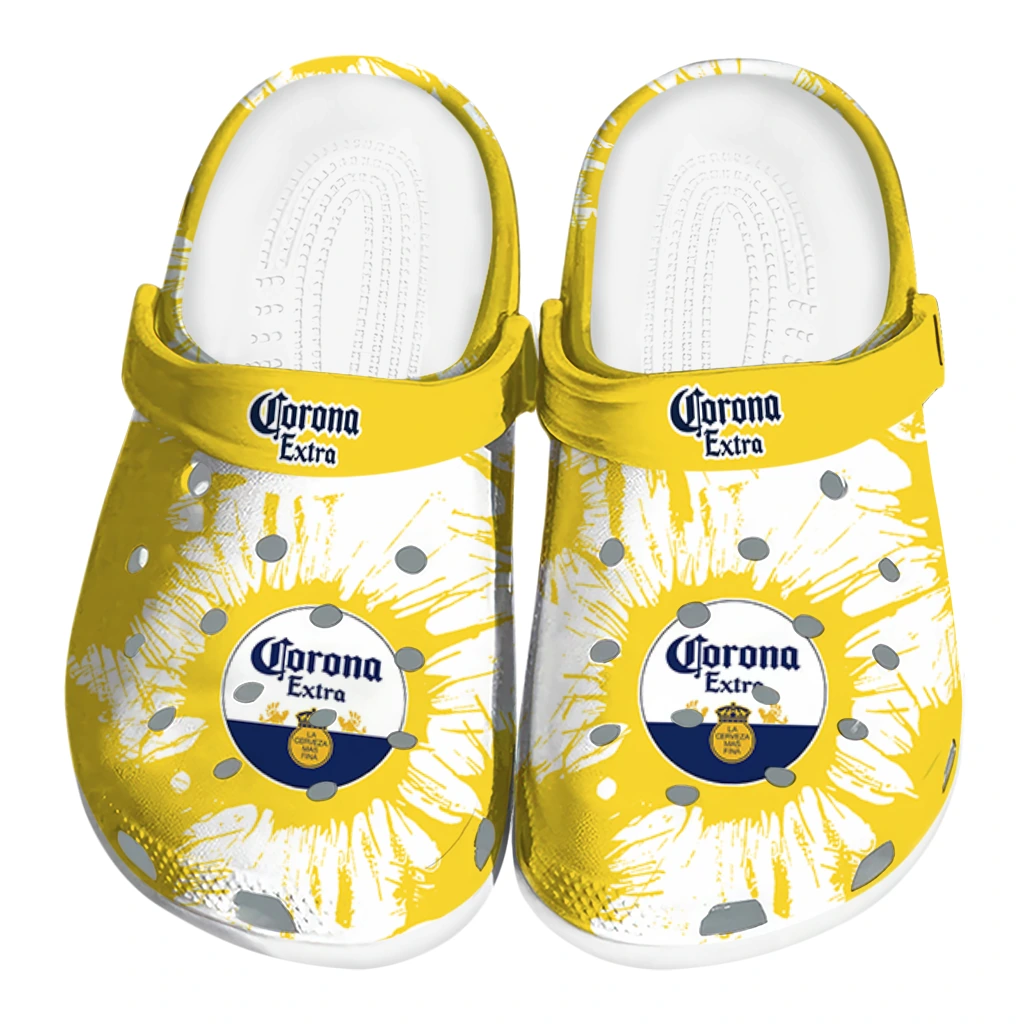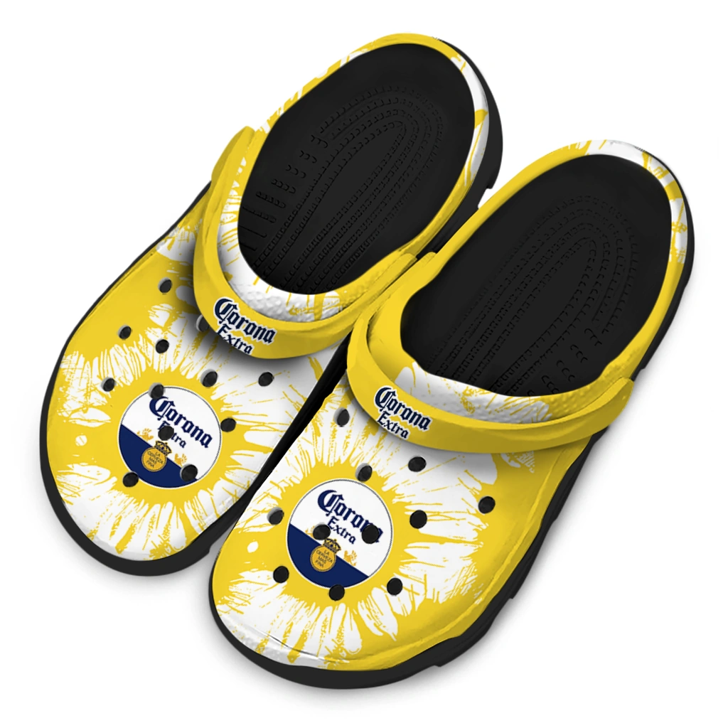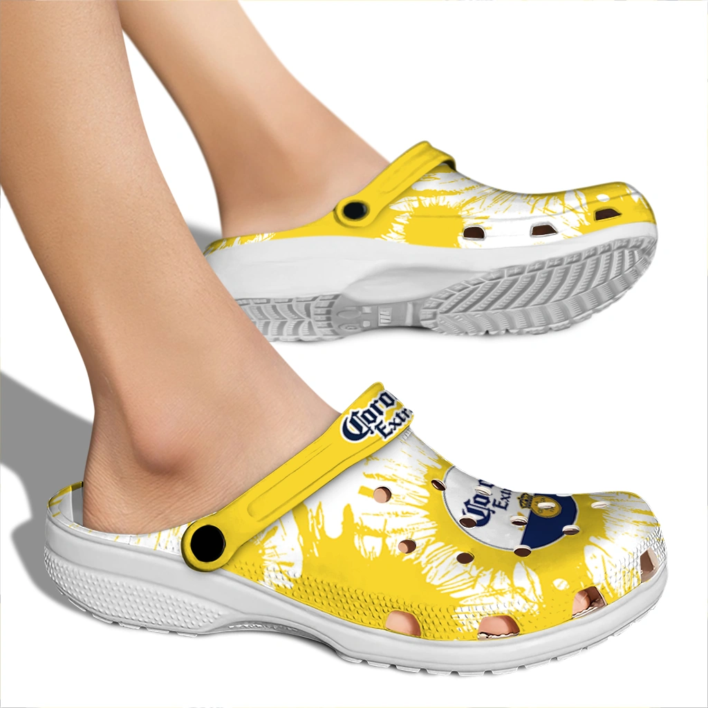 The Corona Beer Burst Impact Yellow White Clogs from Hey Clogs slips on in seconds and keeps pace with your day, from slow mornings at home to city strolls and weekend getaways. Thoughtful design meets playful style with cheerful colors and prints that pop, adding personality to every step while delivering easy, breezy comfort and lightweight support wherever you wander.