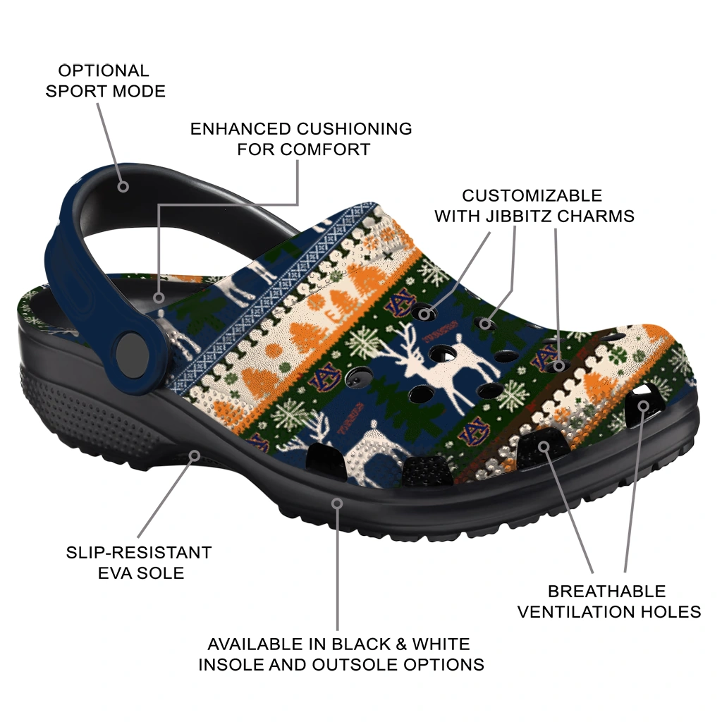 Custom Auburn Tigers Christmas Motif Clogs