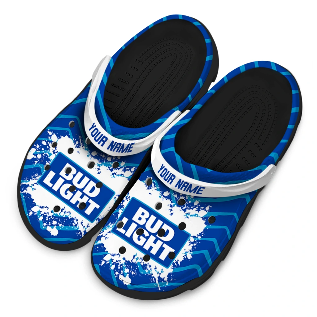 The Custom Bud light Brush Strokes Blue White Clogs from Hey Clogs slips on in seconds and keeps pace with your day – from slow mornings at home to city strolls and weekend getaways. Thoughtful design meets playful style with cheerful colors and prints that pop, adding personality to every step while delivering easy, breezy comfort and lightweight support wherever you wander. Want a signature touch? Customize yours with a name or initials for a one-of-one pair.