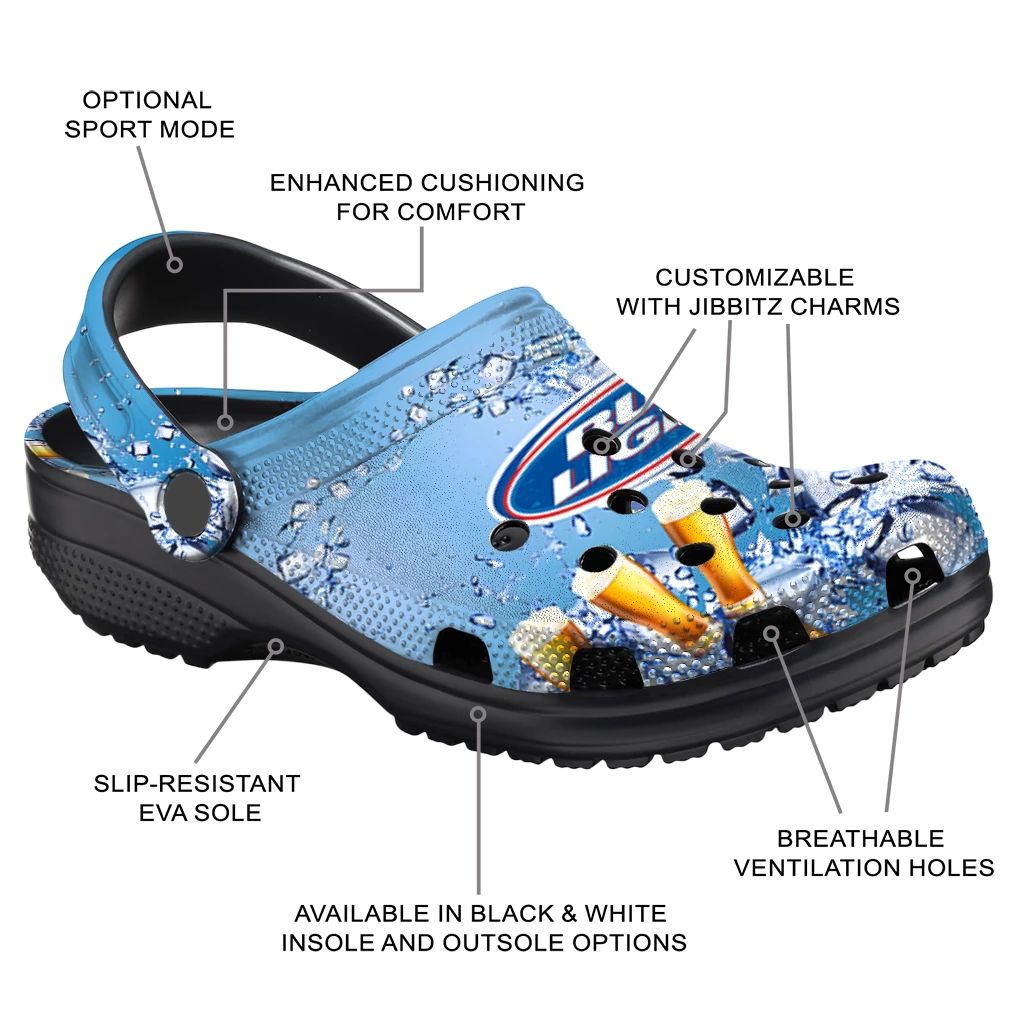 The Custom Bud light Iced Beer Blue Yellow Clogs from Hey Clogs slips on in seconds and keeps pace with your day – from slow mornings at home to city strolls and weekend getaways. Thoughtful design meets playful style with cheerful colors and prints that pop, adding personality to every step while delivering easy, breezy comfort and lightweight support wherever you wander. Want a signature touch? Customize yours with a name or initials for a one-of-one pair.