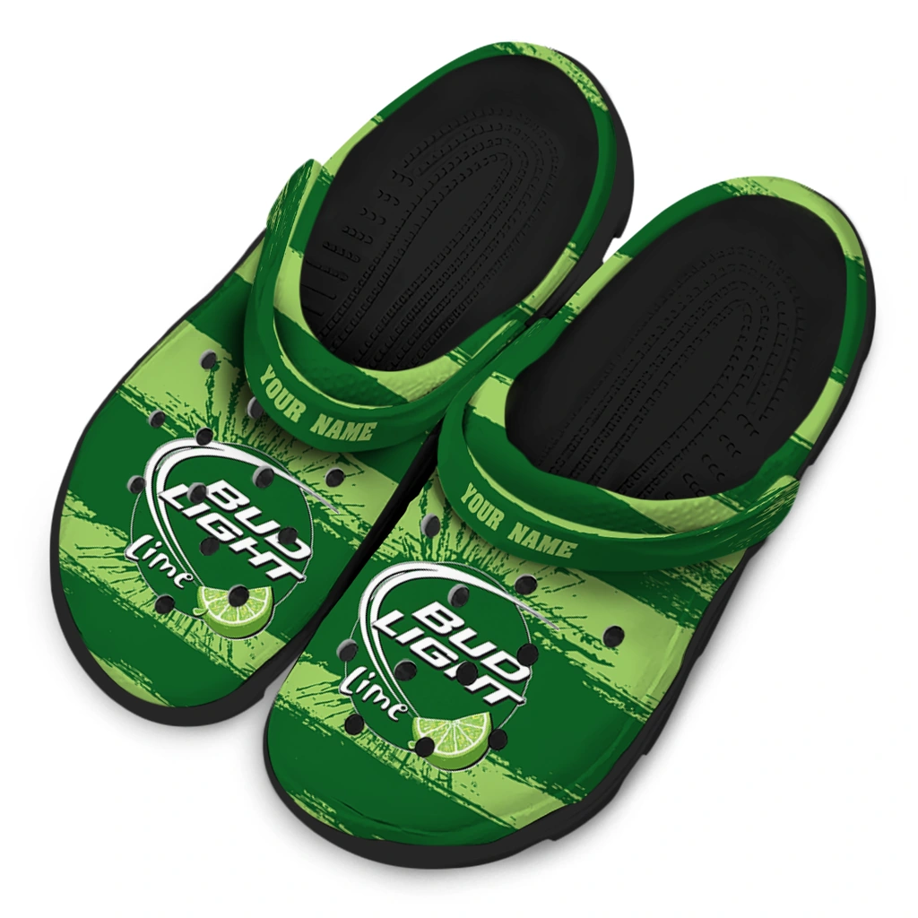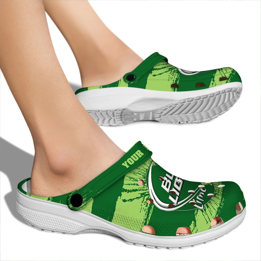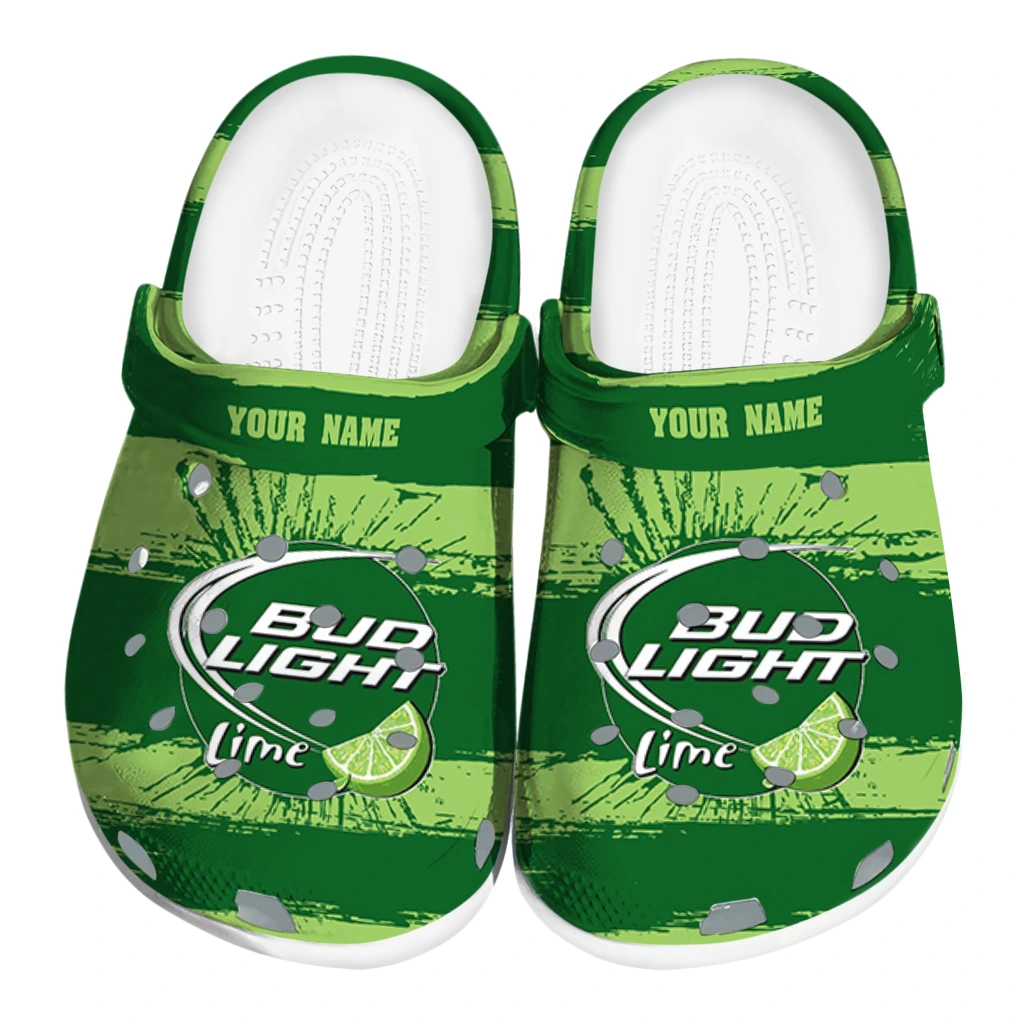 Custom Bud light Lime Brush Stripes Green LightGreen Clogs