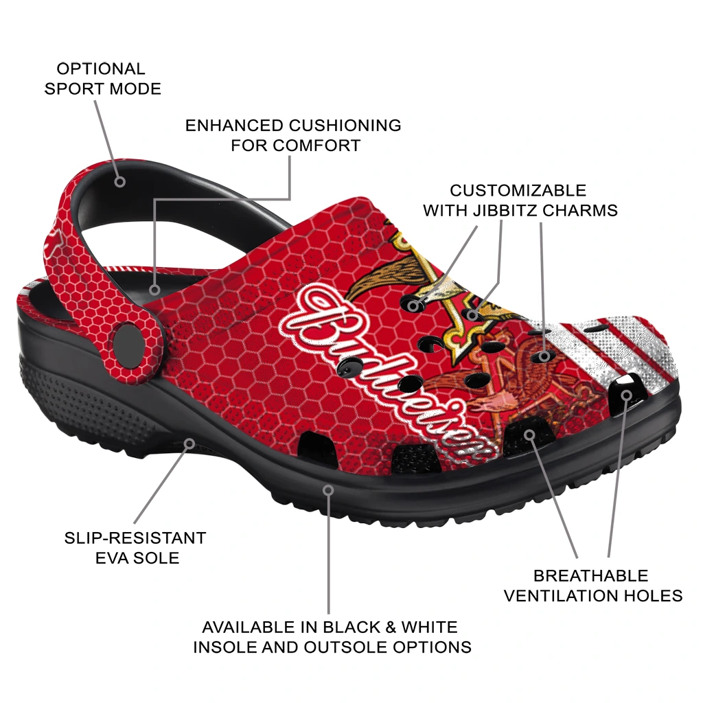 The Custom Budweiser Eagle Claw Red White Clogs from Hey Clogs slips on in seconds and keeps pace with your day – from slow mornings at home to city strolls and weekend getaways. Thoughtful design meets playful style with cheerful colors and prints that pop, adding personality to every step while delivering easy, breezy comfort and lightweight support wherever you wander. Want a signature touch? Customize yours with a name or initials for a one-of-one pair.