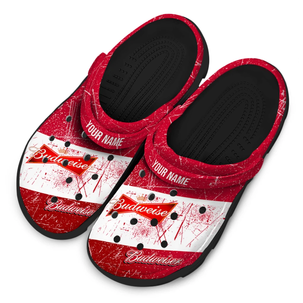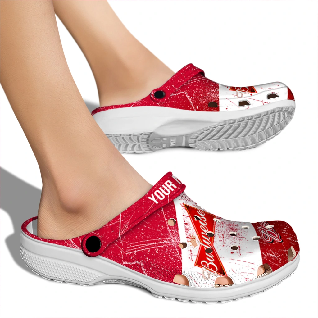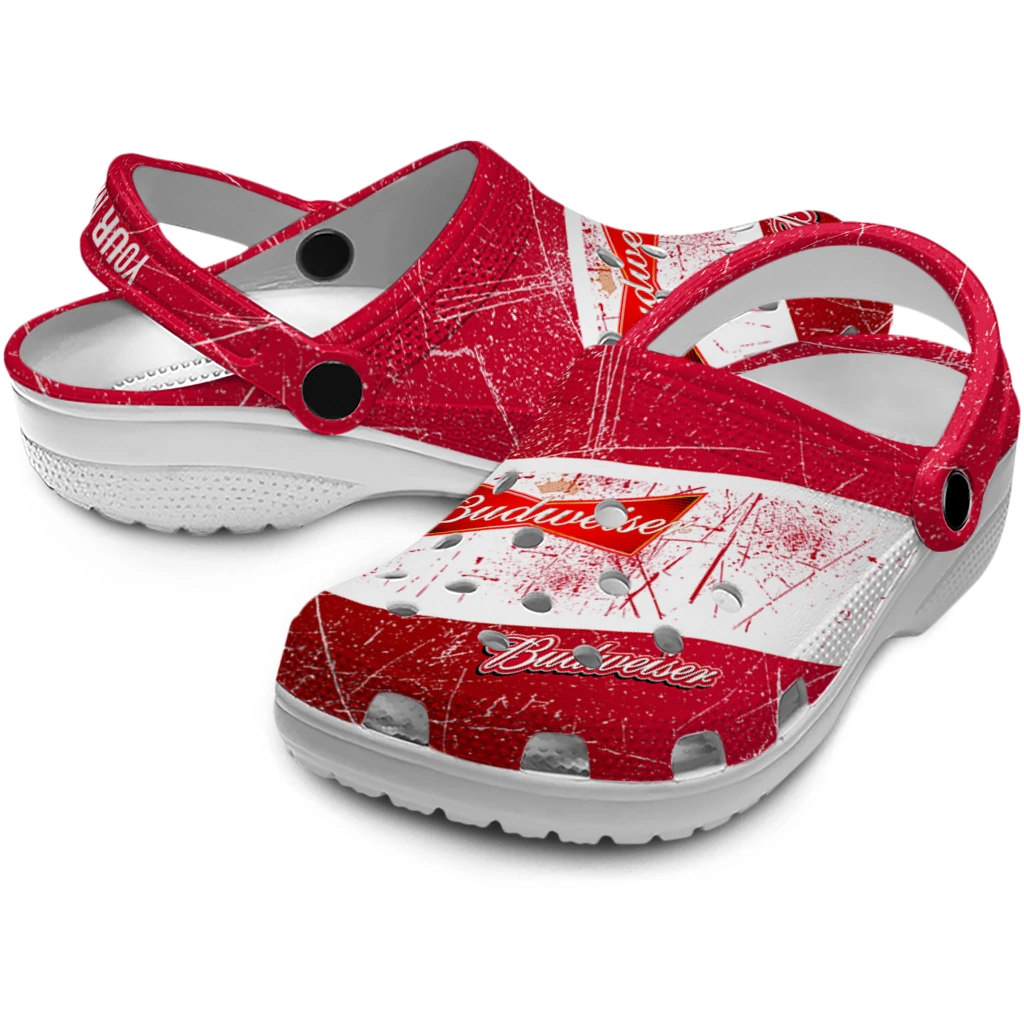 Custom Budweiser Scratch Red White Clogs