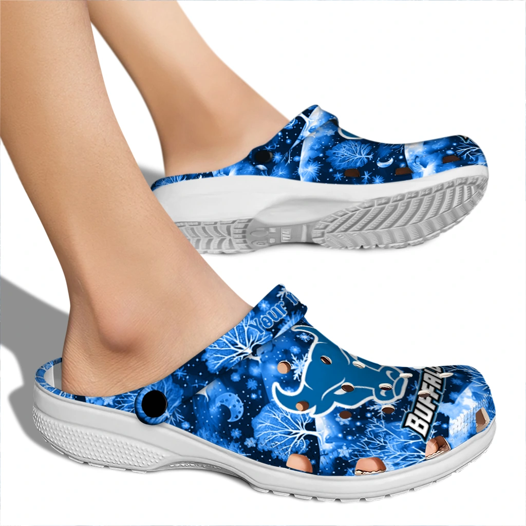 Your Clogs, Your Vibe, Your Name! Custom Buffalo Bulls Snowy Mountains Clogs from Hey Clogs lets you take sport team-inspired style to a personal level! Featuring the bold colors you love, these featherlight clogs deliver unbeatable, all-day comfort. What a great way to make them truly yours: add your name to the heel strap! Perfect for gifting or treating yourself, these personalized clogs are a fun, spirited way to step out in comfort.