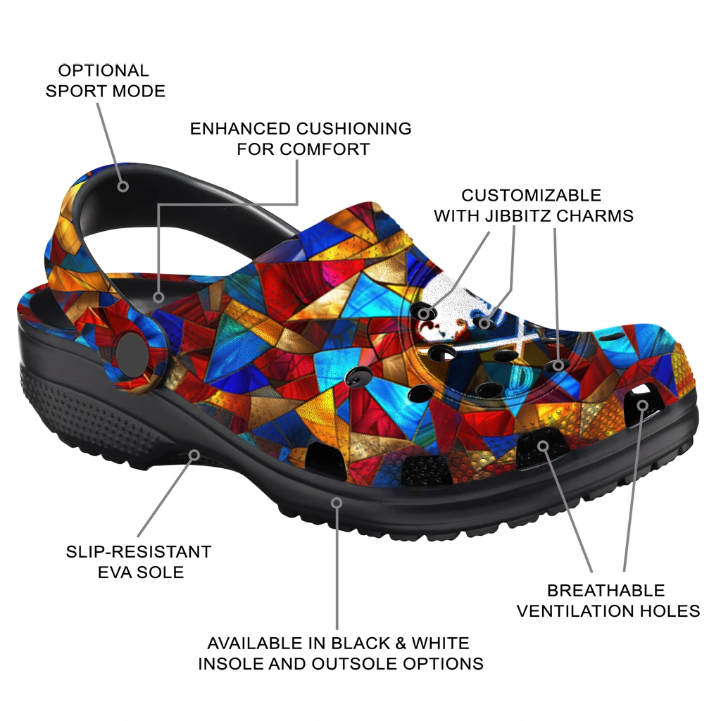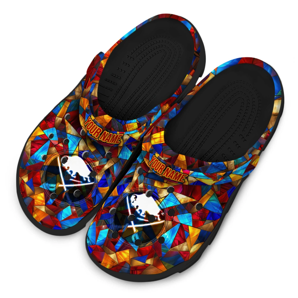 Your Clogs, Your Vibe, Your Name! Custom Buffalo Sabres Prism Pieces Clogs from Hey Clogs lets you take sport team-inspired style to a personal level! Featuring the bold colors you love, these featherlight clogs deliver unbeatable, all-day comfort. What a great way to make them truly yours: add your name to the heel strap! Perfect for gifting or treating yourself, these personalized clogs are a fun, spirited way to step out in comfort.
