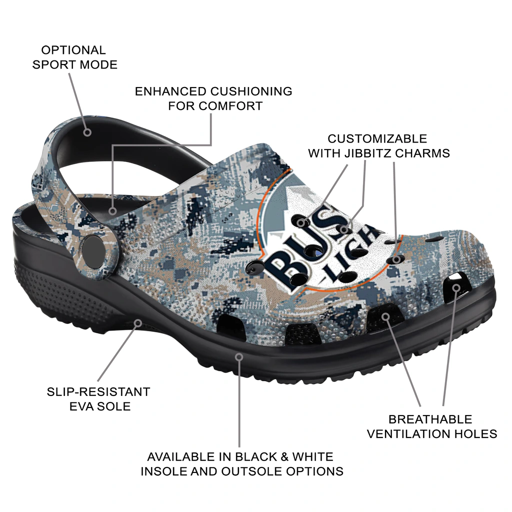 Custom Busch Light Distorted Camo Blue Beige Clogs