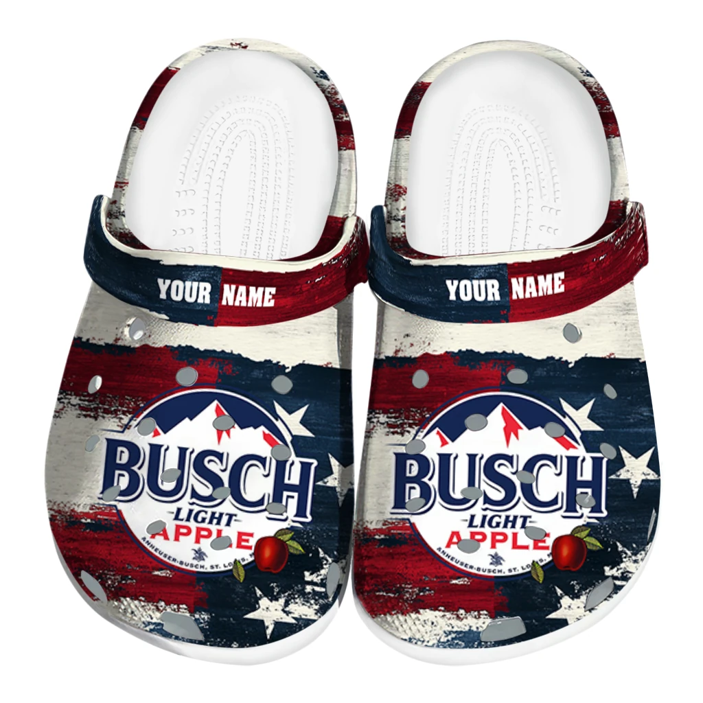 Custom Busch Light Flag Stripes Red White Clogs