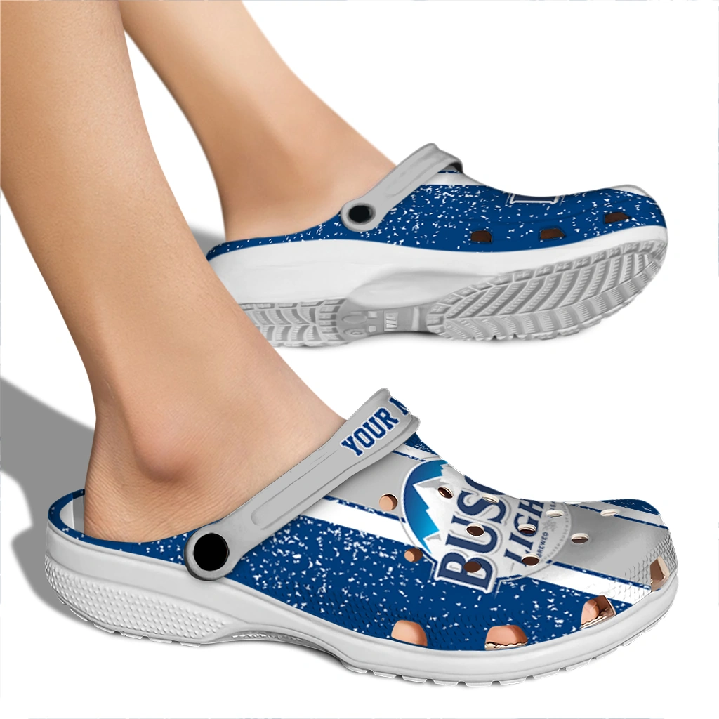 Custom Busch Light Strip Mark Blue Gray Clogs