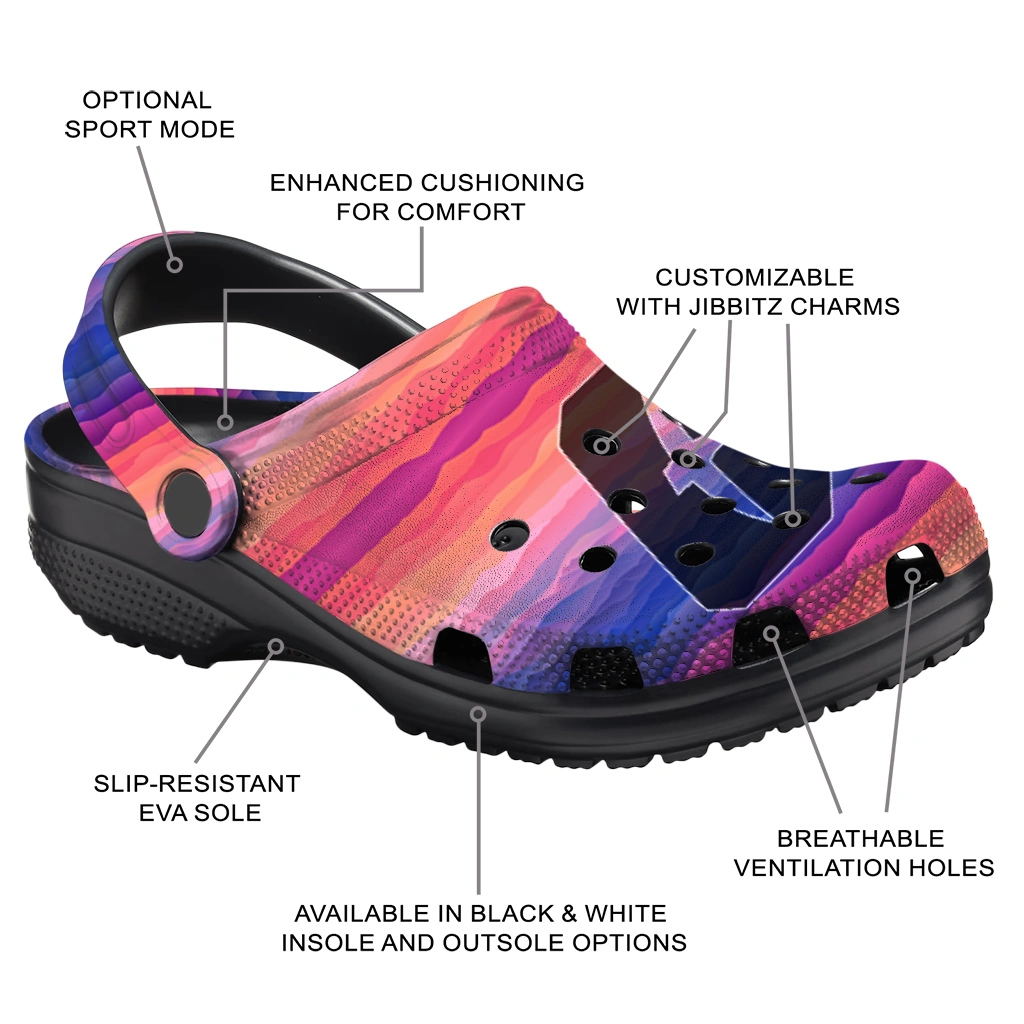 Your Clogs, Your Vibe, Your Name! Personalized Charlotte 49ers Mountain Artwork Clogs from Hey Clogs lets you take sport team-inspired style to a personal level! Featuring the bold colors you love, these featherlight clogs deliver unbeatable, all-day comfort. What a great way to make them truly yours: add your name to the heel strap! Perfect for gifting or treating yourself, these personalized clogs are a fun, spirited way to step out in comfort.