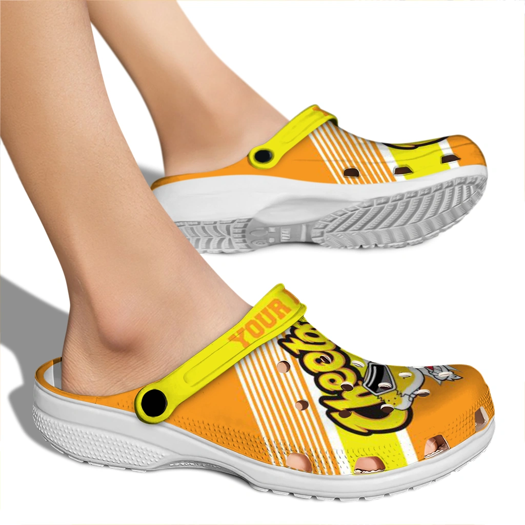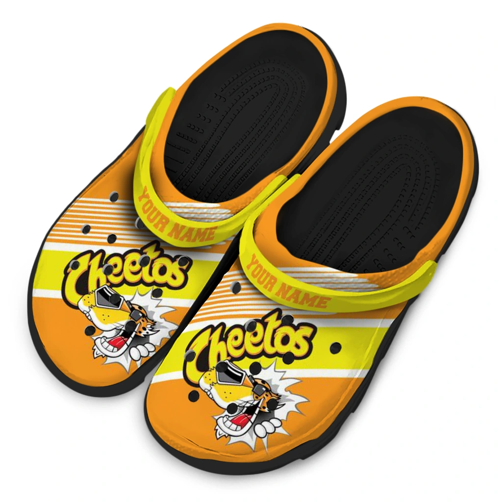 You’ll love it at first sight – and even more when it’s yours alone. Finish your clogs with a custom name or initials for a personal signature that stands out. Advanced UV printing keeps colors vivid without fading or peeling, so your look stays fresh from home lounging to errands, travel days, and lazy afternoons by the water. Easy to slip on and easy to love, the Custom Cheetos Cheetah Snack Orange Yellow Clogs brings together practicality, personality, and the playful spirit of Hey Clogs.
