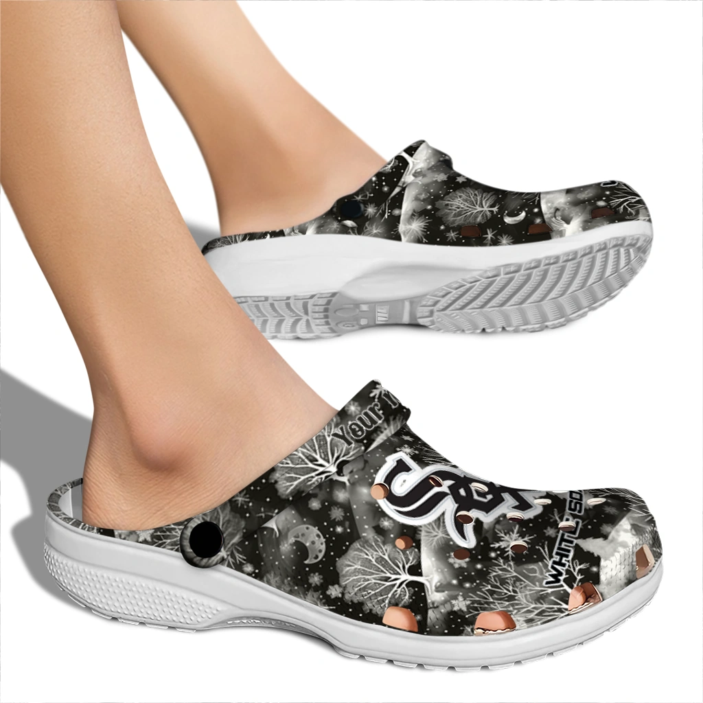Your Clogs, Your Vibe, Your Name! Custom Chicago White Sox Snowy Mountains Clogs from Hey Clogs lets you take sport team-inspired style to a personal level! Featuring the bold colors you love, these featherlight clogs deliver unbeatable, all-day comfort. What a great way to make them truly yours: add your name to the heel strap! Perfect for gifting or treating yourself, these personalized clogs are a fun, spirited way to step out in comfort.