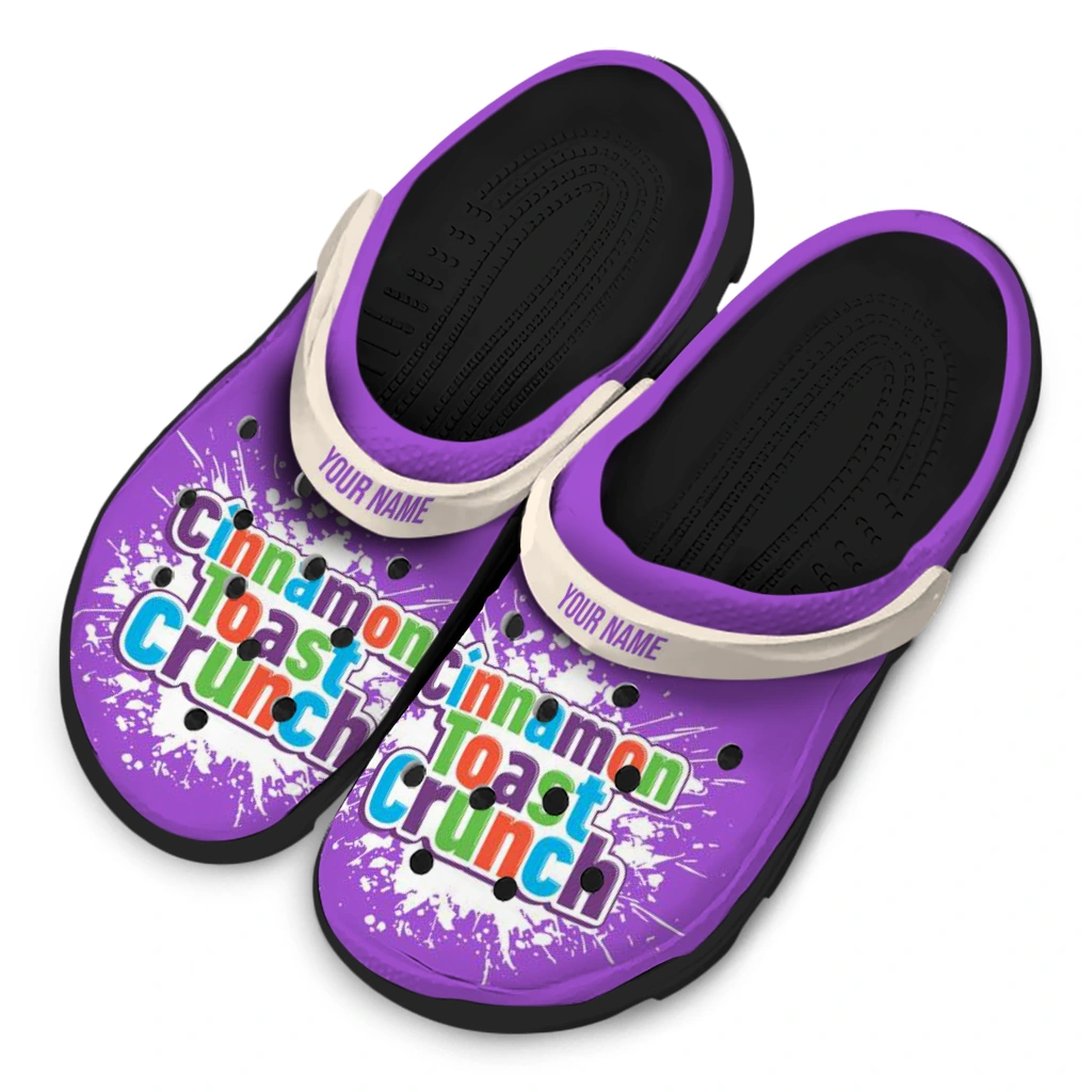 Custom Cinamon Toast Crunch Splatter Text Purple Clogs