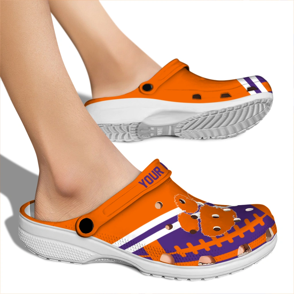 Your Clogs, Your Vibe, Your Name! Custom Clemson Tigers Football Motif Clogs from Hey Clogs lets you take sport team-inspired style to a personal level! Featuring the bold colors you love, these featherlight clogs deliver unbeatable, all-day comfort. What a great way to make them truly yours: add your name to the heel strap! Perfect for gifting or treating yourself, these personalized clogs are a fun, spirited way to step out in comfort.