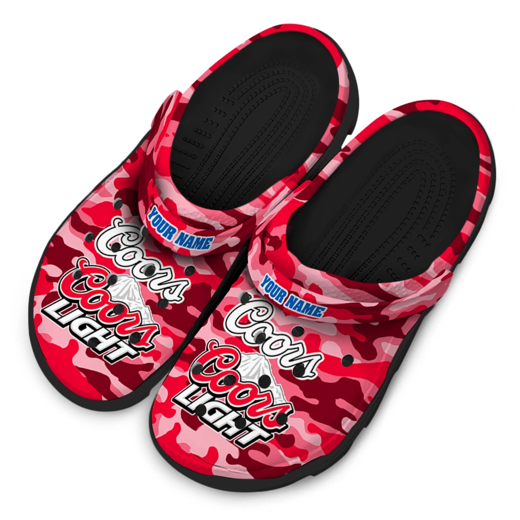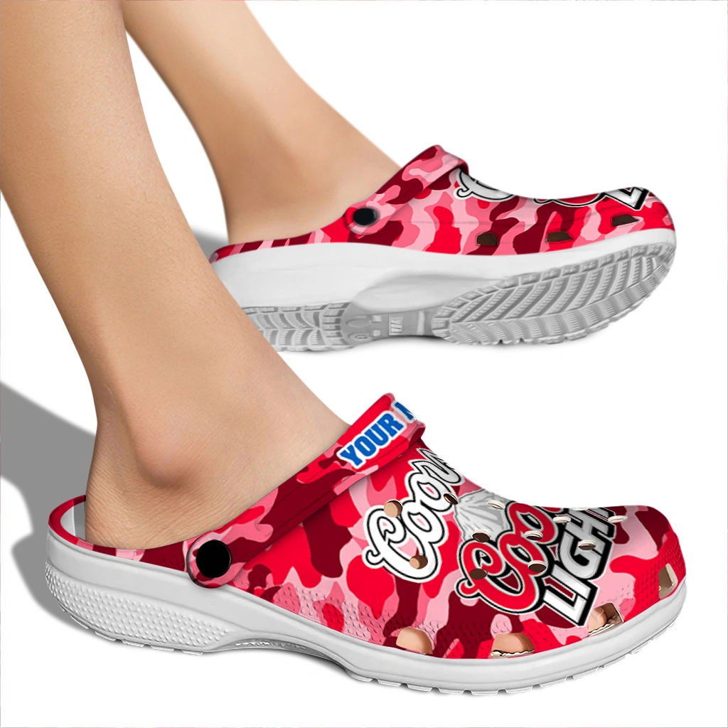 Custom Coors Light Beer Camo Print Red Pink Clogs