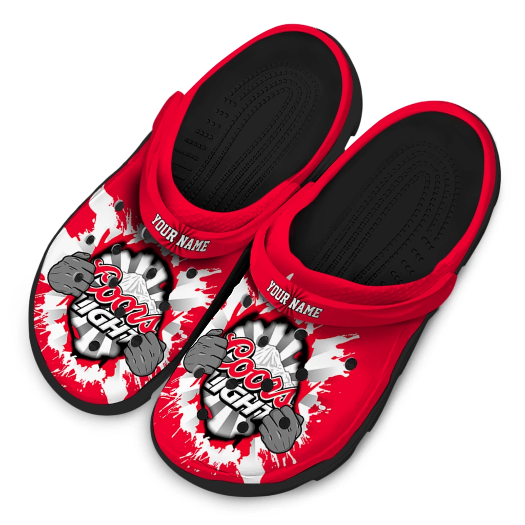 Custom Coors Light Beer Power Hit Red White Clogs