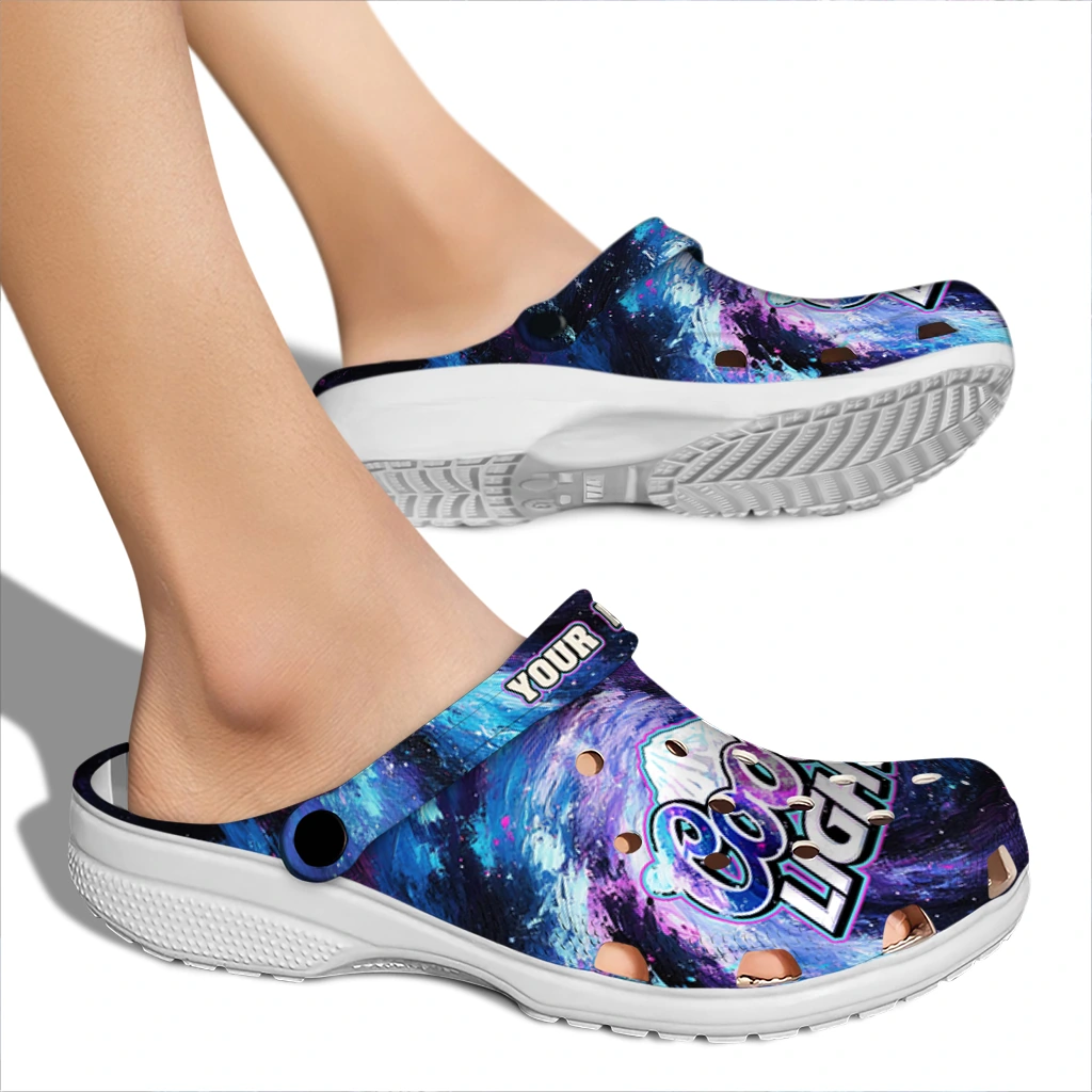 Can’t take your eyes off the Custom Coors Light Beer Swirl Motion Purple Blue Clogs? We get it. This pair mixes sun-bright prints with cloud-soft comfort in a silhouette that’s effortless to style and even easier to wear. Crafted from premium EVA, it’s ultra-light yet supportive, quick to dry after splashy moments, and steady underfoot thanks to an anti-slip sole.