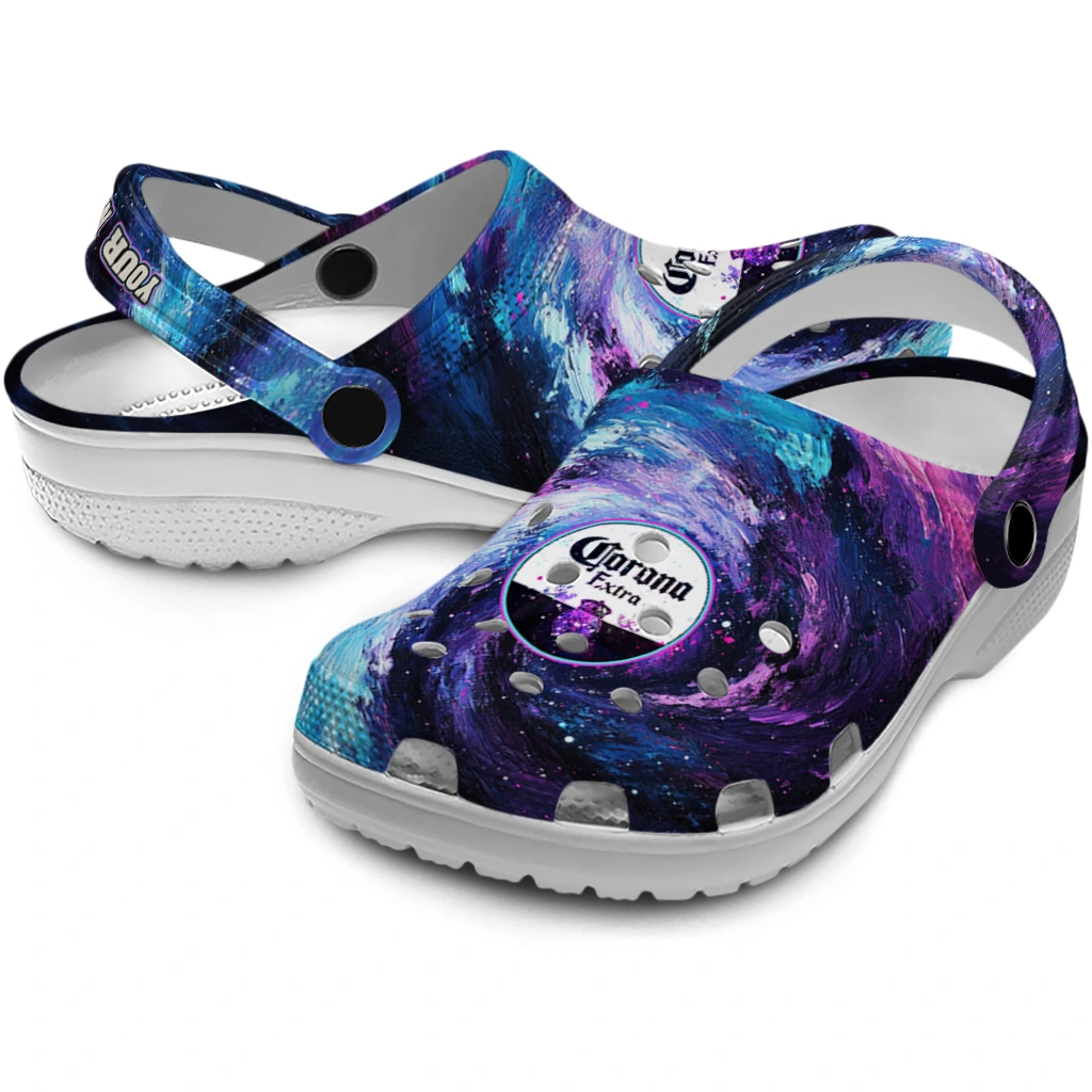Custom Corona Beer Galaxy Purple Blue Clogs