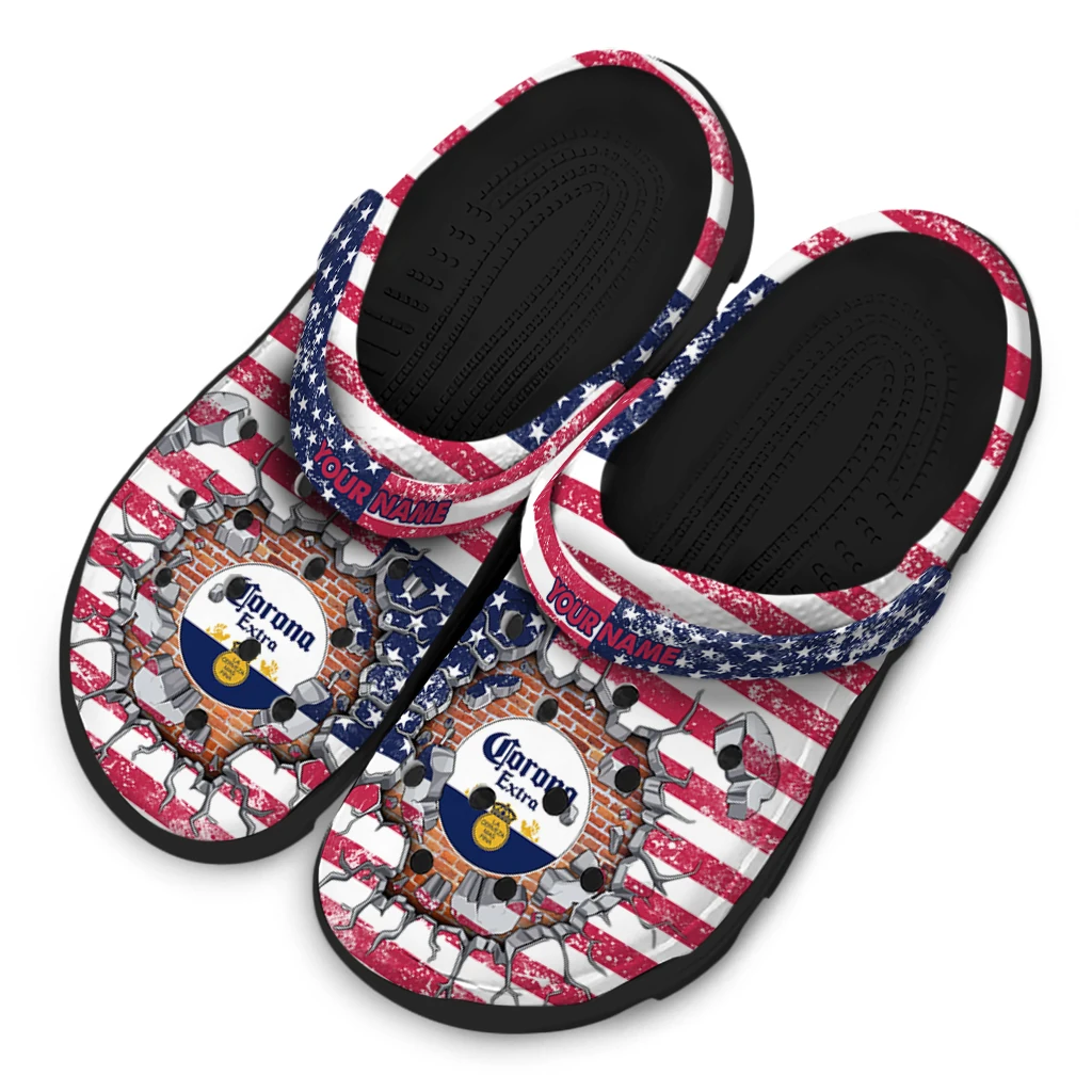 The Custom Corona Beer USA Smash Red Blue Clogs from Hey Clogs slips on in seconds and keeps pace with your day – from slow mornings at home to city strolls and weekend getaways. Thoughtful design meets playful style with cheerful colors and prints that pop, adding personality to every step while delivering easy, breezy comfort and lightweight support wherever you wander. Want a signature touch? Customize yours with a name or initials for a one-of-one pair.
