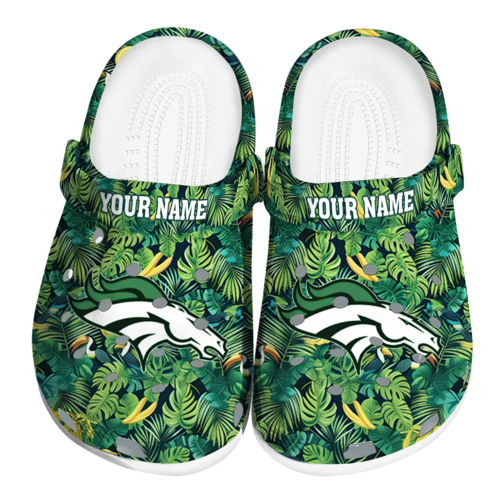 Your Clogs, Your Vibe, Your Name! Custom Denver Broncos Tropical Leaves Clogs from Hey Clogs lets you take sport team-inspired style to a personal level! Featuring the bold colors you love, these featherlight clogs deliver unbeatable, all-day comfort. What a great way to make them truly yours: add your name to the heel strap! Perfect for gifting or treating yourself, these personalized clogs are a fun, spirited way to step out in comfort.