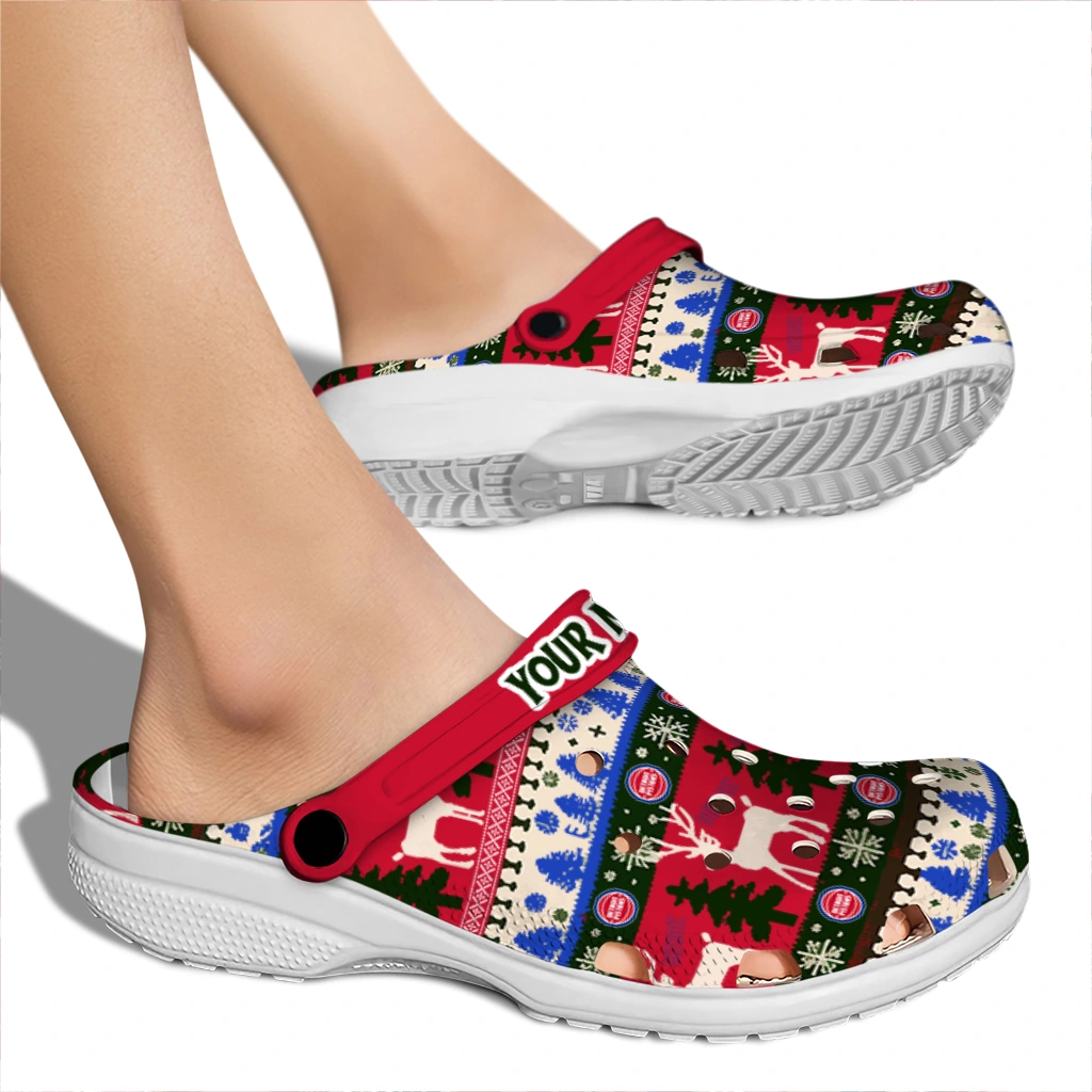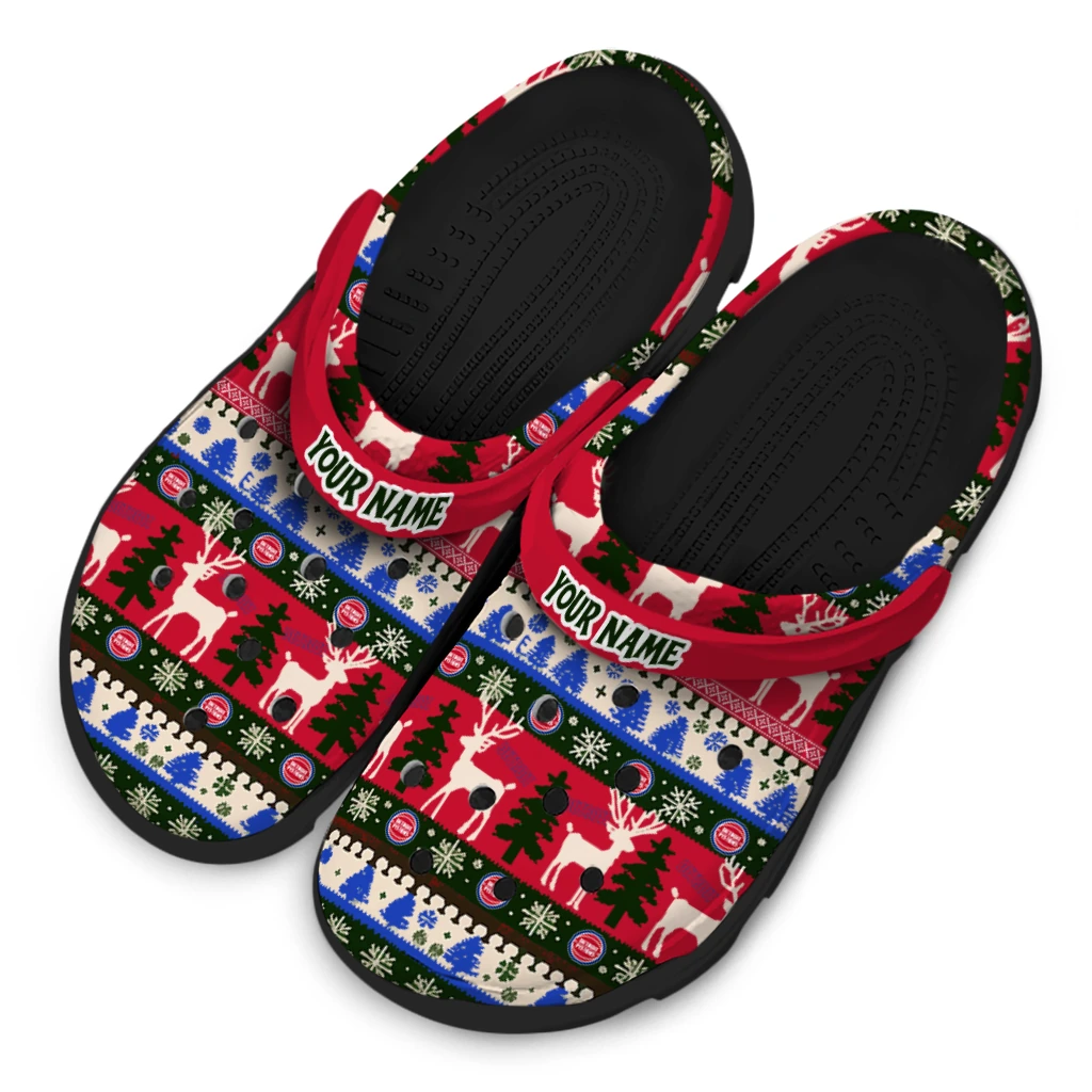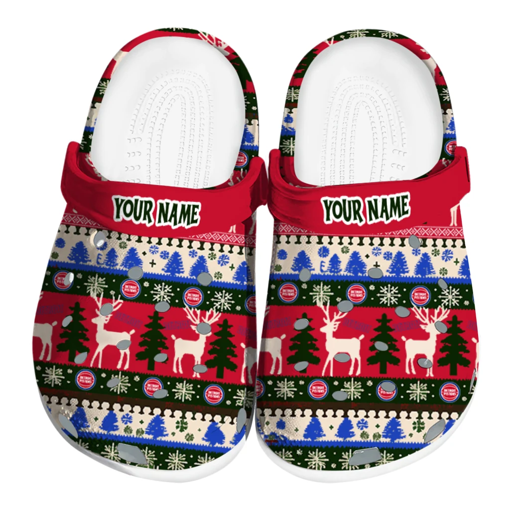 Your Clogs, Your Vibe, Your Name! Custom Detroit Pistons Christmas Motif Clogs from Hey Clogs lets you take sport team-inspired style to a personal level! Featuring the bold colors you love, these featherlight clogs deliver unbeatable, all-day comfort. What a great way to make them truly yours: add your name to the heel strap! Perfect for gifting or treating yourself, these personalized clogs are a fun, spirited way to step out in comfort.
