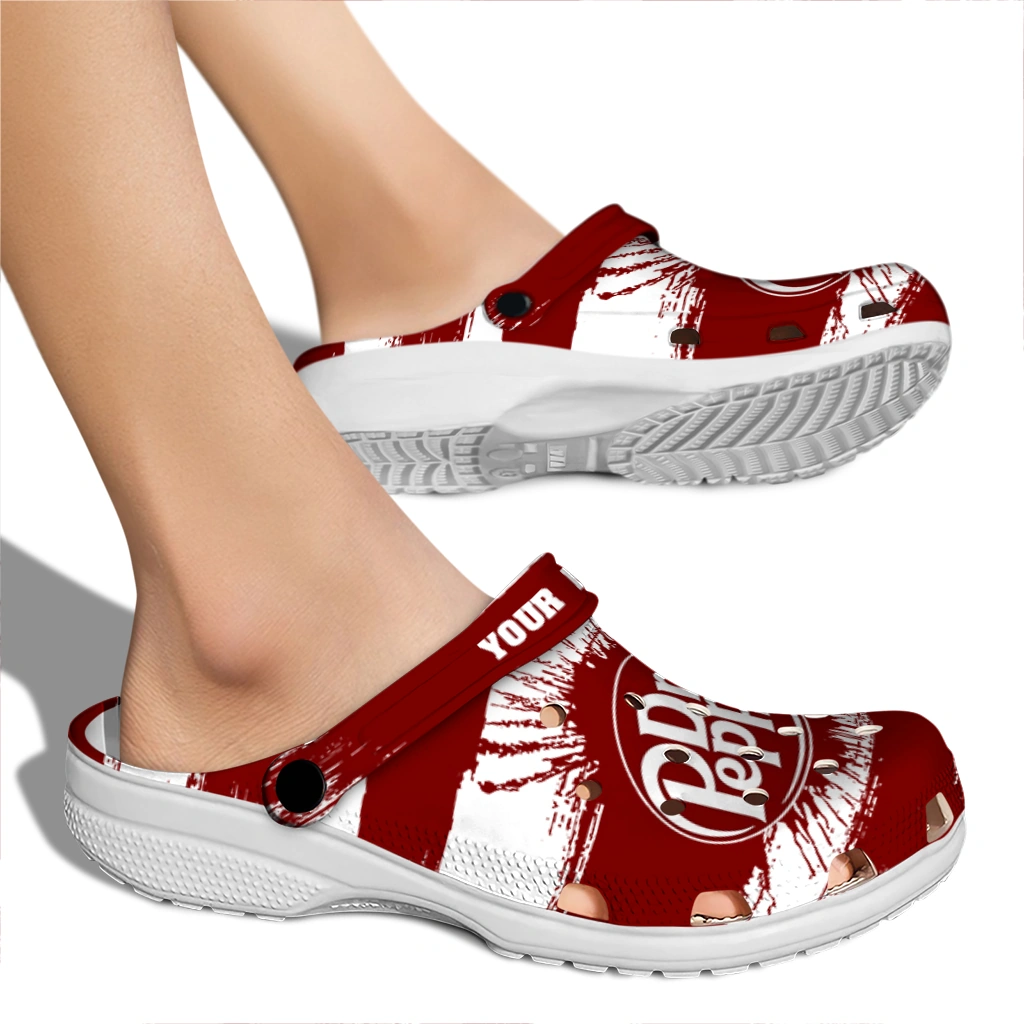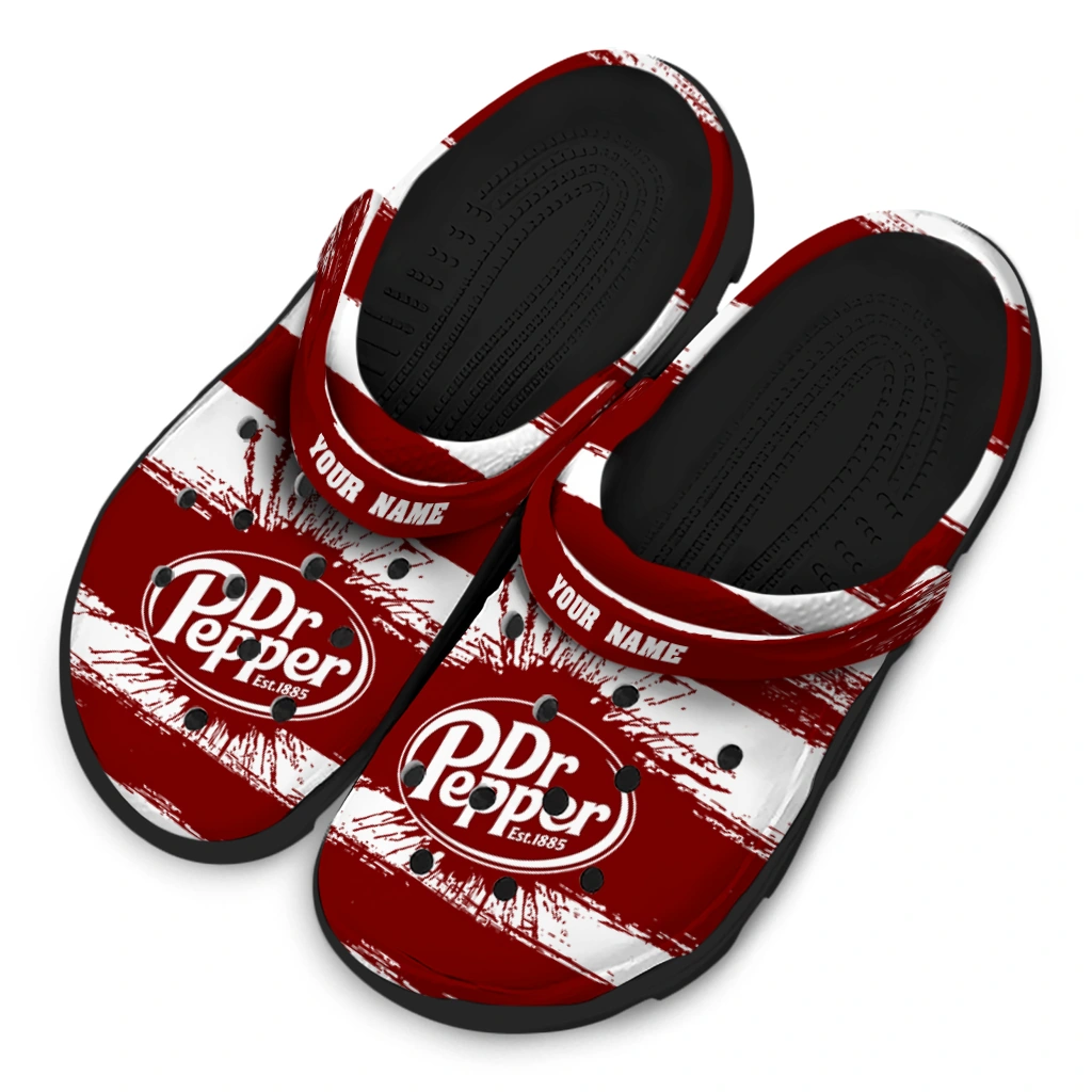 Custom Dr Pepper Brush Stripes Red White Clogs